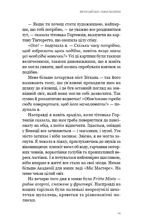 Кароліна Грант намагається змиритися із закінченням шлюбу, коли отримує несподіваний спадок. Її улюблена двоюрідна бабуся Летті залишає їй альбом для замальовок, три ключі та останній шепіт… Венеція. Завдання Кароліни — розвіяти прах Джульєтти Браунінг (Летті) у місті, яке вона кохала, та розгадати таємниці, що зберігалися понад шістдесят років.