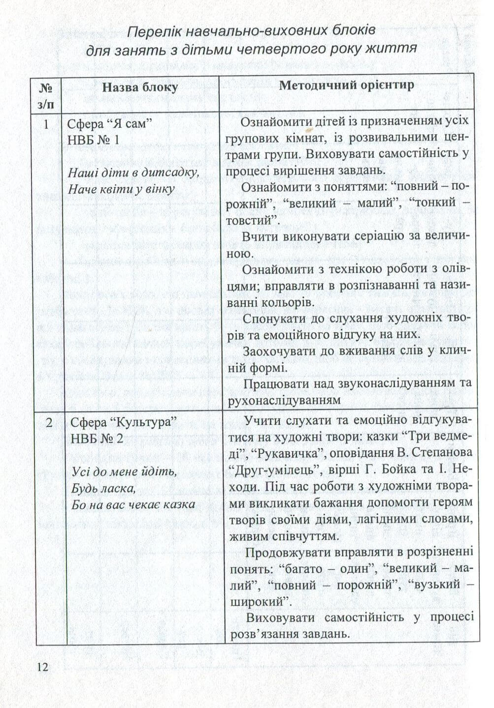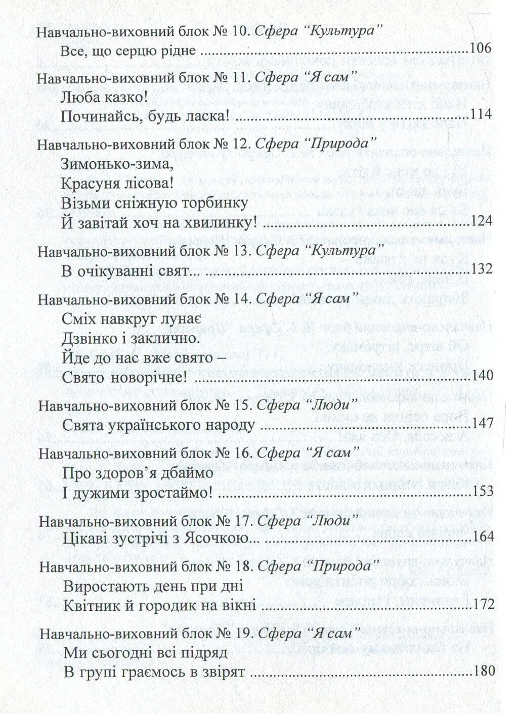 Посібник презентує авторську систему навчально-виховних блоків як орієнтир планування, практичні доробки та досвід упровадження в практику Базової програми розвитку дитини дошкільного віку “Я у Світі”.