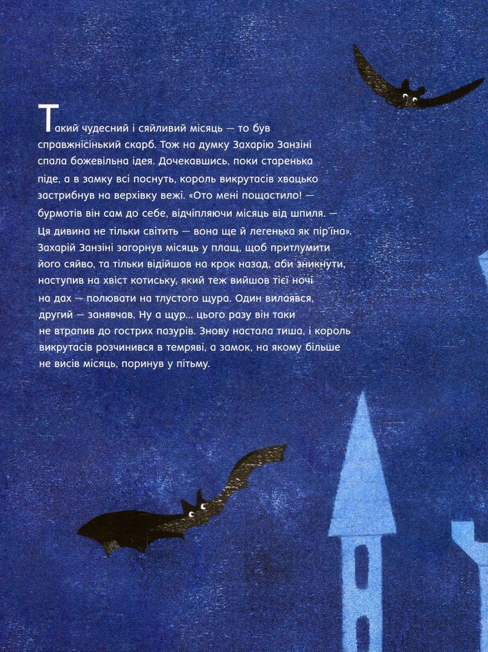 Цю історію створено, аби подарувати всім малюкам міцний та солодкий сон. Її не можна читати як звичайні історії, в жодному разі! Її читання має стати справжнім магічним обрядом. Історія про викрадення місяця із небосхилу полоскоче уяву, а врешті закінчиться добре. Діти обожнюють мітстику. Книга створена за мотивами казки Братів Грімм.