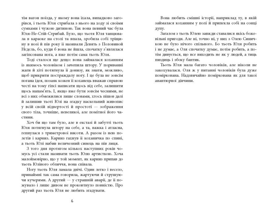 "Для чого Оля Синичка придбала стару хату в селі? Щоб ходити вранці босою по росянистій траві, щоб дихати на повні груди і відчувати — ось воно, моє місце, тут моє серденько. Щоб нарешті почати жити, а не дочікуватися кінця війни або чийогось дозволу бути щасливою. Реальність, щоправда, виявилася не такою безхмарною, як Оля собі уявляла, переглядаючи картинки в інтернеті. Бур’яни доводять до сказу, сусіди пхають носа в чужий город, дорогоцінні родичі кепкують і взагалі мають жахливе почуття гумору, а любі подруги перегинають палицю зі своєю турботою, створюючи геть анекдотичні ситуації. Щира, добра й весела історія про родину, дружбу й пошуки свого шляху, а можливо, і кохання. "