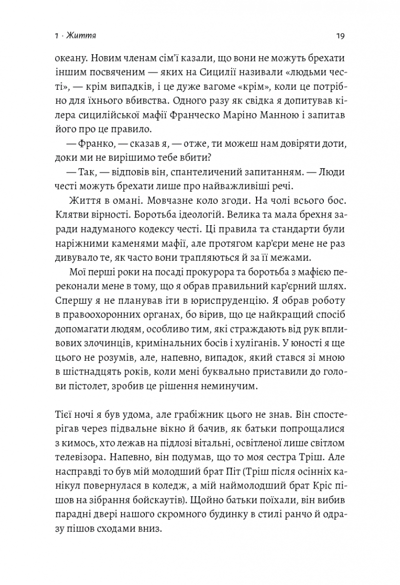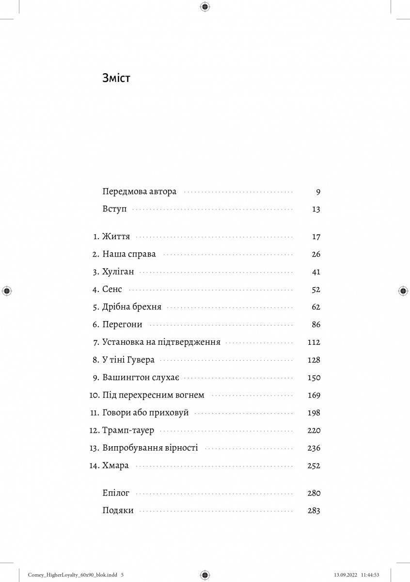 За двадцять років роботи на американський уряд автор брав участь у найгучніших справах — Комі очолив розслідування ФБР щодо змови членів виборчої кампанії Трампа із Росією, щоб вплинути на вибори 2016 року; він був прокурором, який допоміг ліквідувати злочинну сім’ю Гамбіно. Саме між цими двома випадками автор сміливо проводить аналогію, порівнюючи керівництво Трампа зі злочинним угрупуванням. На прикладі власної професійної кар’єри він показує, як можна залишатися вірним принципам демократії та не вестися на маніпуляції окремої групи людей.