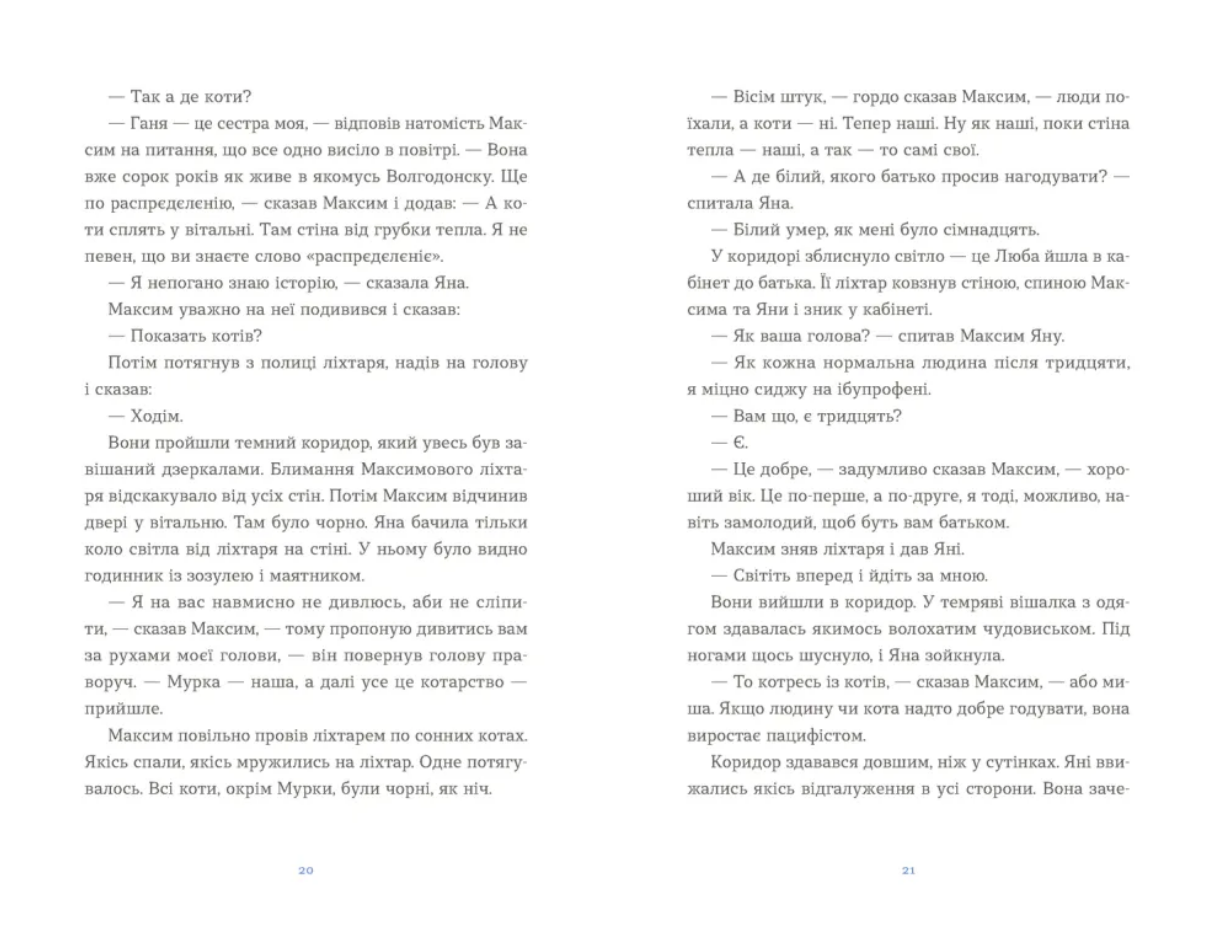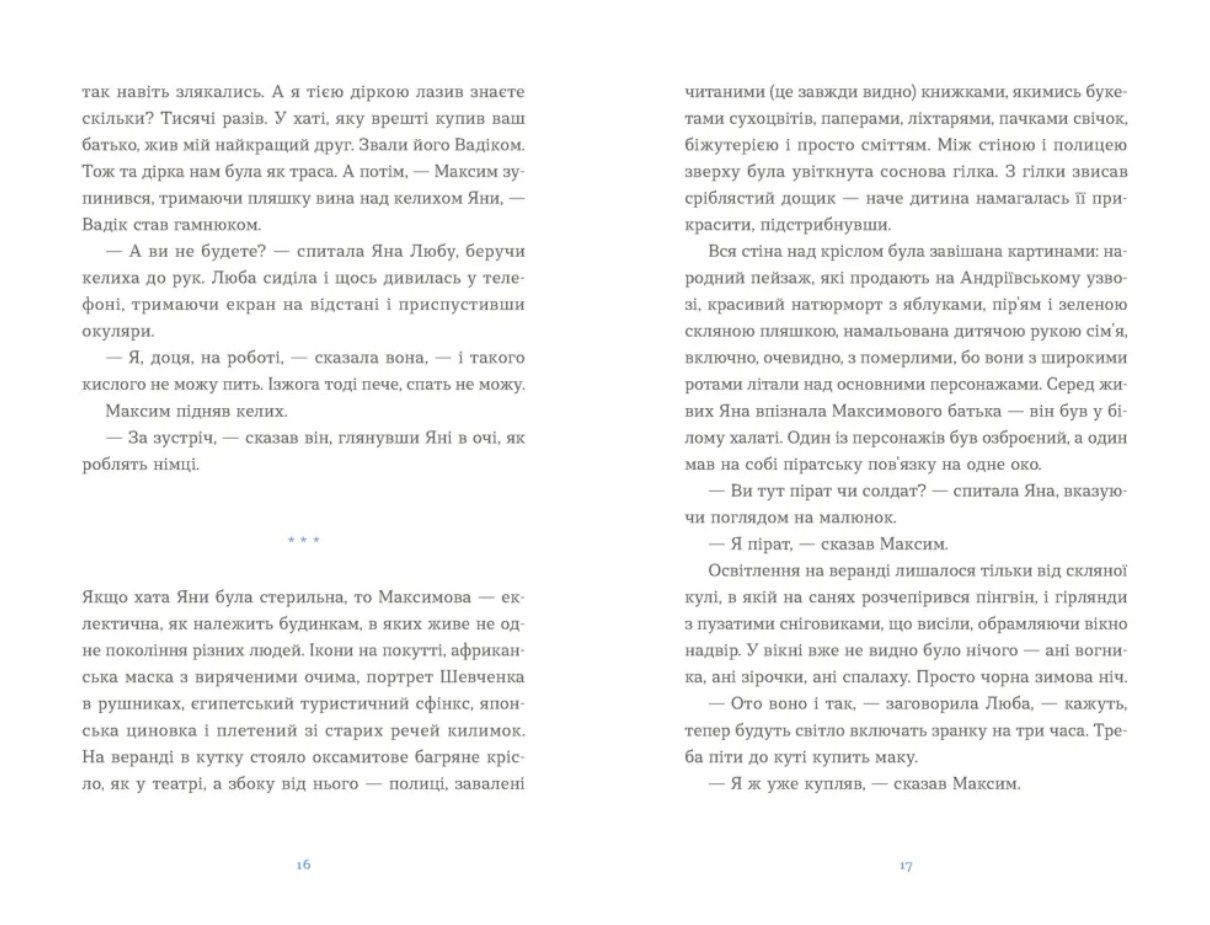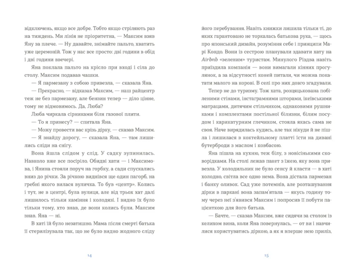 Навіть коли здається, що час застигає, а земля зупиняється, приходить зима. Сіріє небо, шелестять висохлі трави, мерехтять гірлянди під гул генераторів — більше для світла, ніж для свята. Люди живуть війну як уміють, роблять свій вибір, як можуть: відпустити чи хай там що, аби свої були цілі? Чи стане серця для любові у темну добу? У засніжених очеретах Дніпра, на спустілих вулицях, що стікаються з пагорбів до траси, у темних хатах, де поріг обсипають маком від нечисті, а душі померлих приходять за Різдвяні столи, Яна переступає через дірку в паркані і вплутується у дилеми, де немає ані правильних запитань, ані відповідей, але є Максим, непевність, любов і вівці.