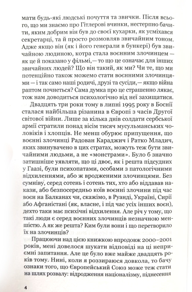 Що перетворює цілком притомних та цивілізованих людей, які нічим не відрізняються від інших у буденному житті, на вбивць і ґвалтівників під час війни? І чи будь-хто з нас теж потенційно може стати злочинцем у відповідних умовах?