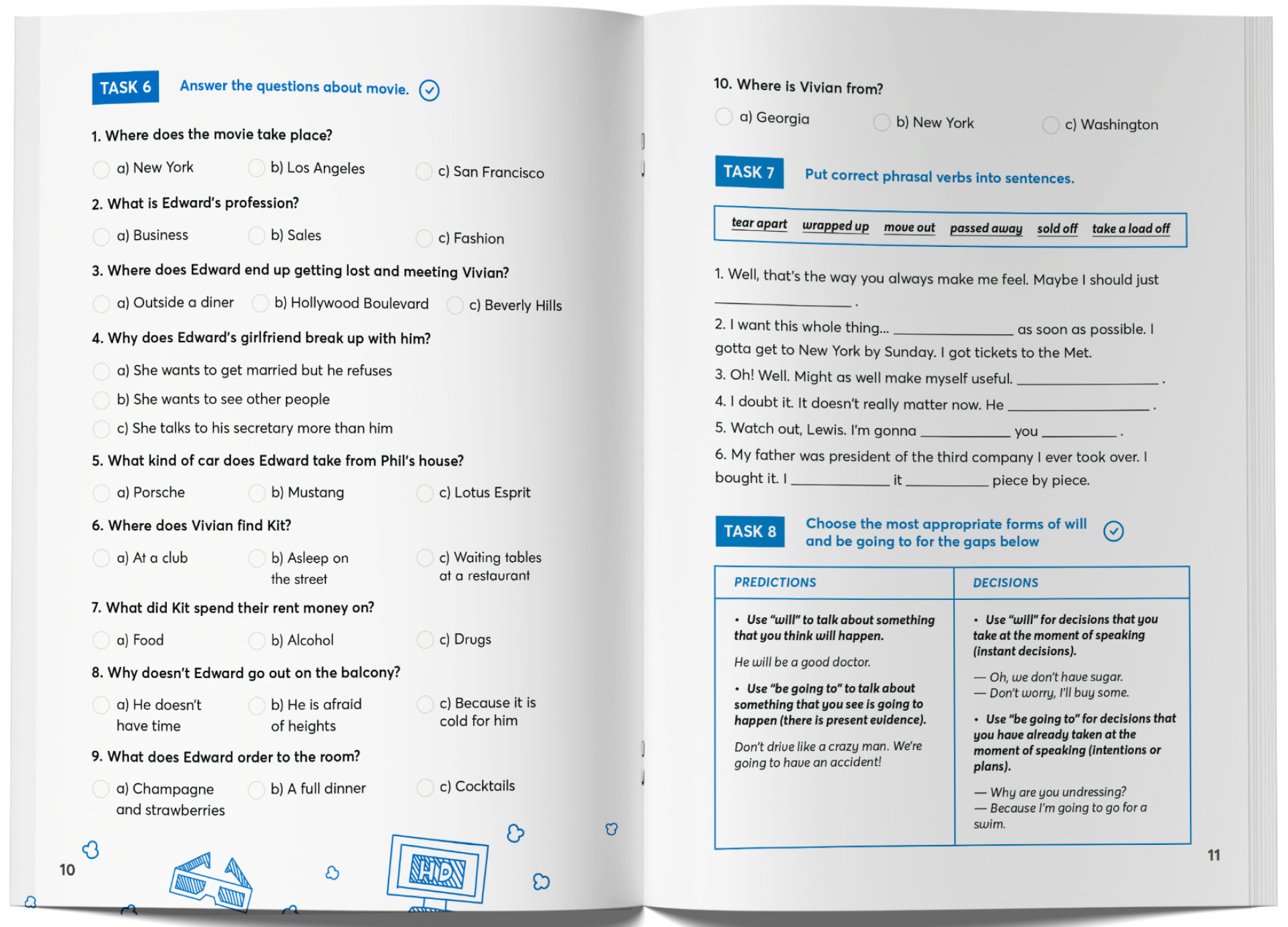 - наприкінці книжки ви знайдете цікаві факти про фільм, а також ключі для самостійної перевірки засвоєного матеріалу.