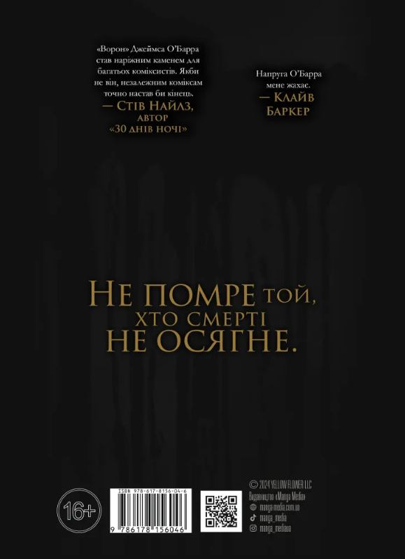 Графічний роман «Ворон» від автора Джеймса О`Барра — захоплива драматична історія про Еріка Дрейвена, який керуючись нестримною жагою помсти, повертається до життя з потойбіччя, аби відновити справедливість за втрачене кохання.