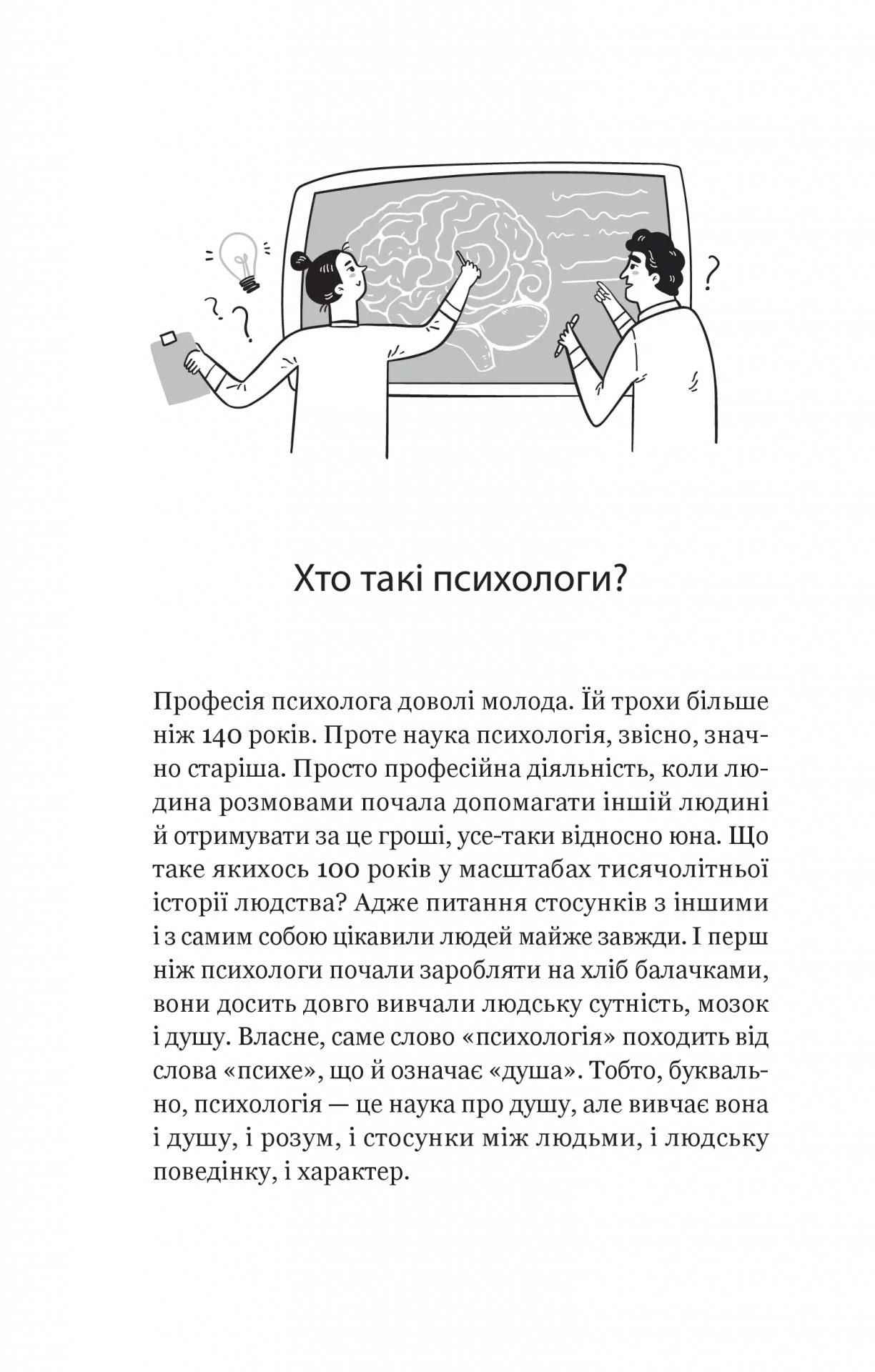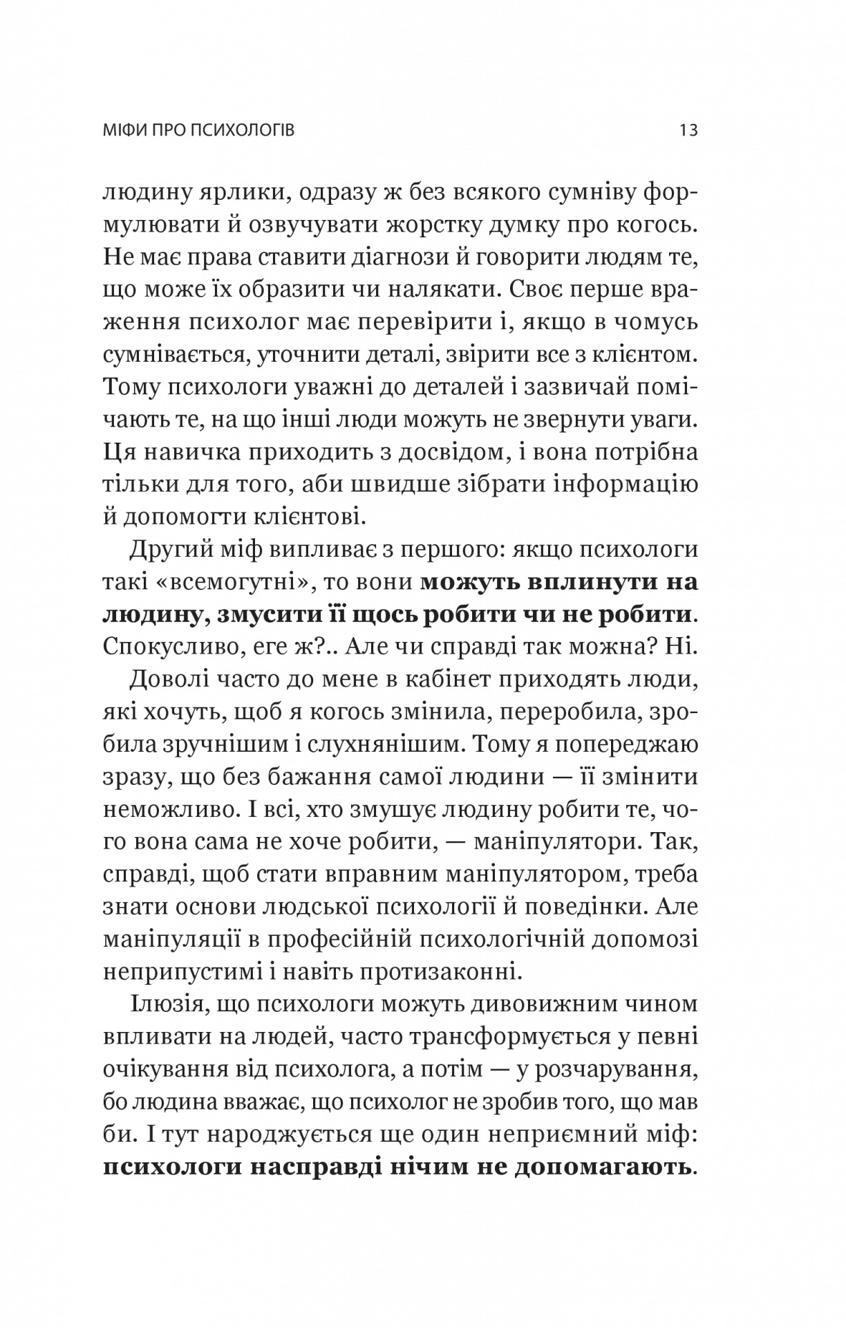 Катерина Гольцберг, психологиня з двадцятирічним досвідом, розпові дає про все, що має знати людина, яка переступає кабінет психолога і хоче отримати реальну допомогу. Описує процеси роботи, розвінчує міфи, підказує, як обрати тип психологічної допомоги, як формувати запит. Від цих знань залежить те, наскільки якісною буде допомога.