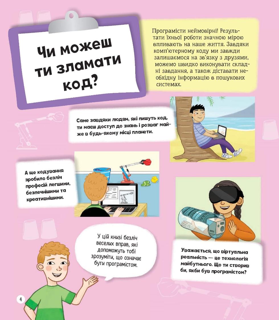 Із книжками серії «Я можу бути» діти зможуть випробувати себе в найсучасніших і найактуальніших професіях. «Я можу бути програмістом» дасть змогу зануритися у двійкову царину програмування й обчислювальної техніки.