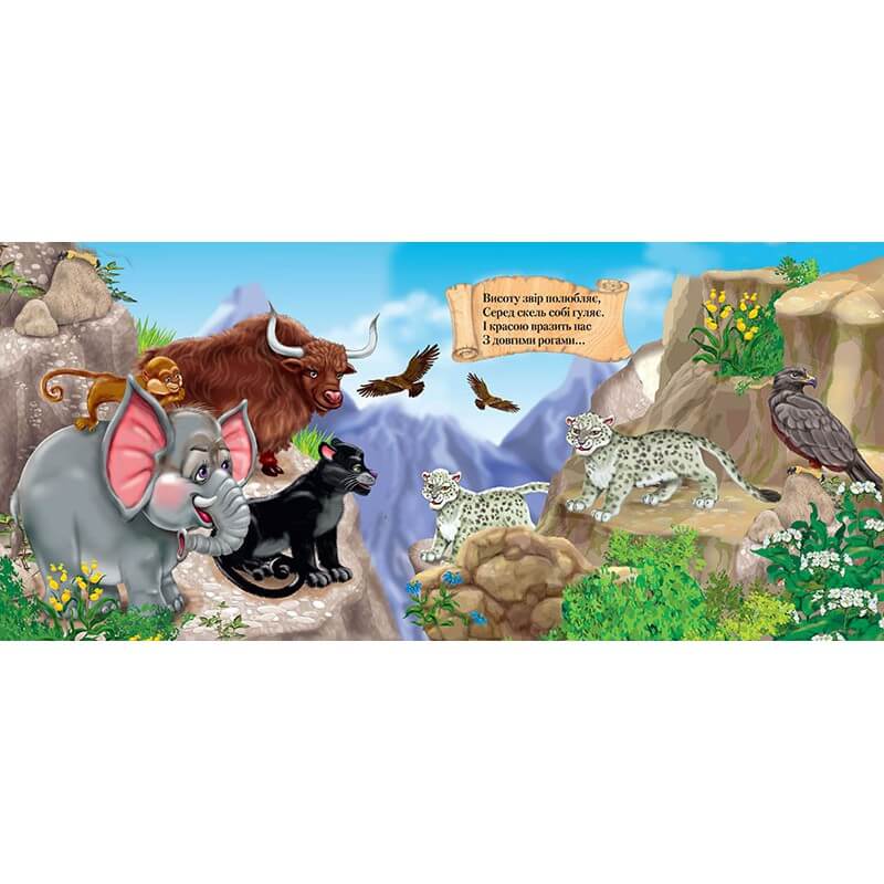 Віршовані загадки для маленьких дослідників про тварин різних континентів. Відгадки можна перевірити потягнувши «шторки» особливого віконечка. Яскраві малюнки допомагають детально уявити, як виглядають краєвиди різних широт із мешканцями тваринного світу.