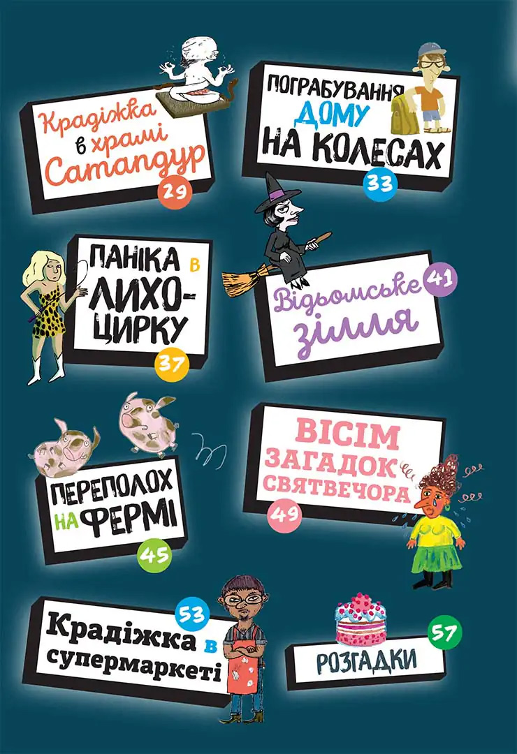 Запитання та підказки до кожної головоломки — докази, які допоможуть розкрити справу. Уважно читайте свідчення потерпілих, розглядайте ілюстрації (адже там теж є підказки!), аналізуйте, й тоді винуватцю вже дійсно не втекти.
