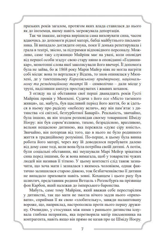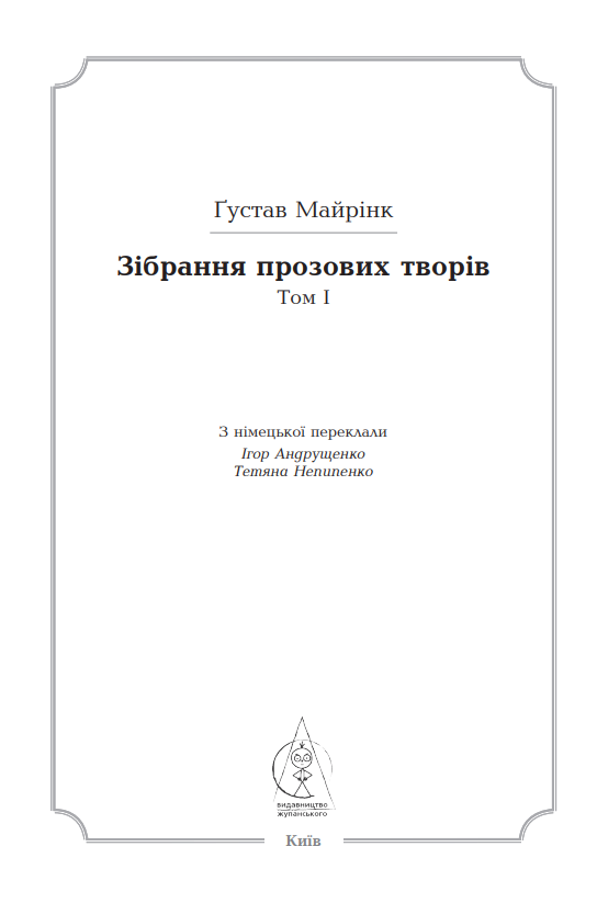 До першого тому зібрання прозових творів Ґустава Майрінка, австрійського майстра літератури надприродного, увійшли романи «Ґолем», «Зелений лик» і «Вальпургієва ніч».