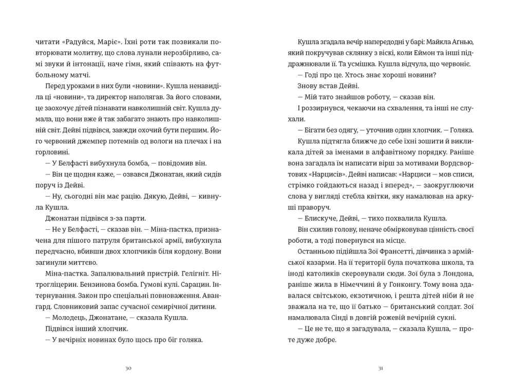 Серед новин, що день у день приносять звістки про чергову трагедію, Кушла намагається вести спокійне життя зі своєю матір’ю в невеликому містечку поблизу Белфаста. Вдень вона викладає у парафіяльній школі, а ввечері підпрацьовує в сімейному пабі. Там вона знайомиться з Майклом Аґнью — адвокатом, який здобув славу, захищаючи членів ІРА. Всупереч здоровому глузду — адже Майкл не лише протестант, а ще й старший і одружений — Кушла дозволяє собі поринути в його витончений світ, і між ними спалахують почуття. Та коли над батьком одного з її учнів влаштовують розправу, це стає початком подій, які ставлять під загрозу все, що Кушла найбільше прагне вберегти.