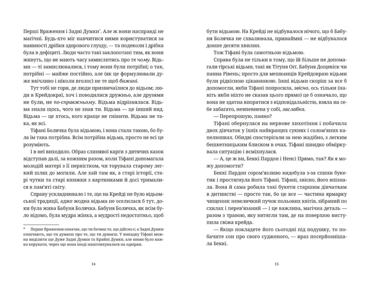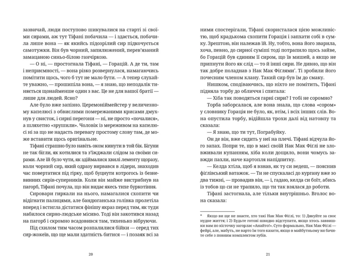 Разом із бравими Нак Мак Фіґлями Тіфані готується протистояти найтемнішим глибинам людської природи та магії, що виходить з-під контролю. Тим часом геть недоречно до юної відьми навідуються думки про кохання — саме тепер, коли вона має стільки нових обов’язків. Чи це все просто дурниці? Можливо, Тіфані вже час повністю прийняти відьомство і зодягнути на себе ніч?