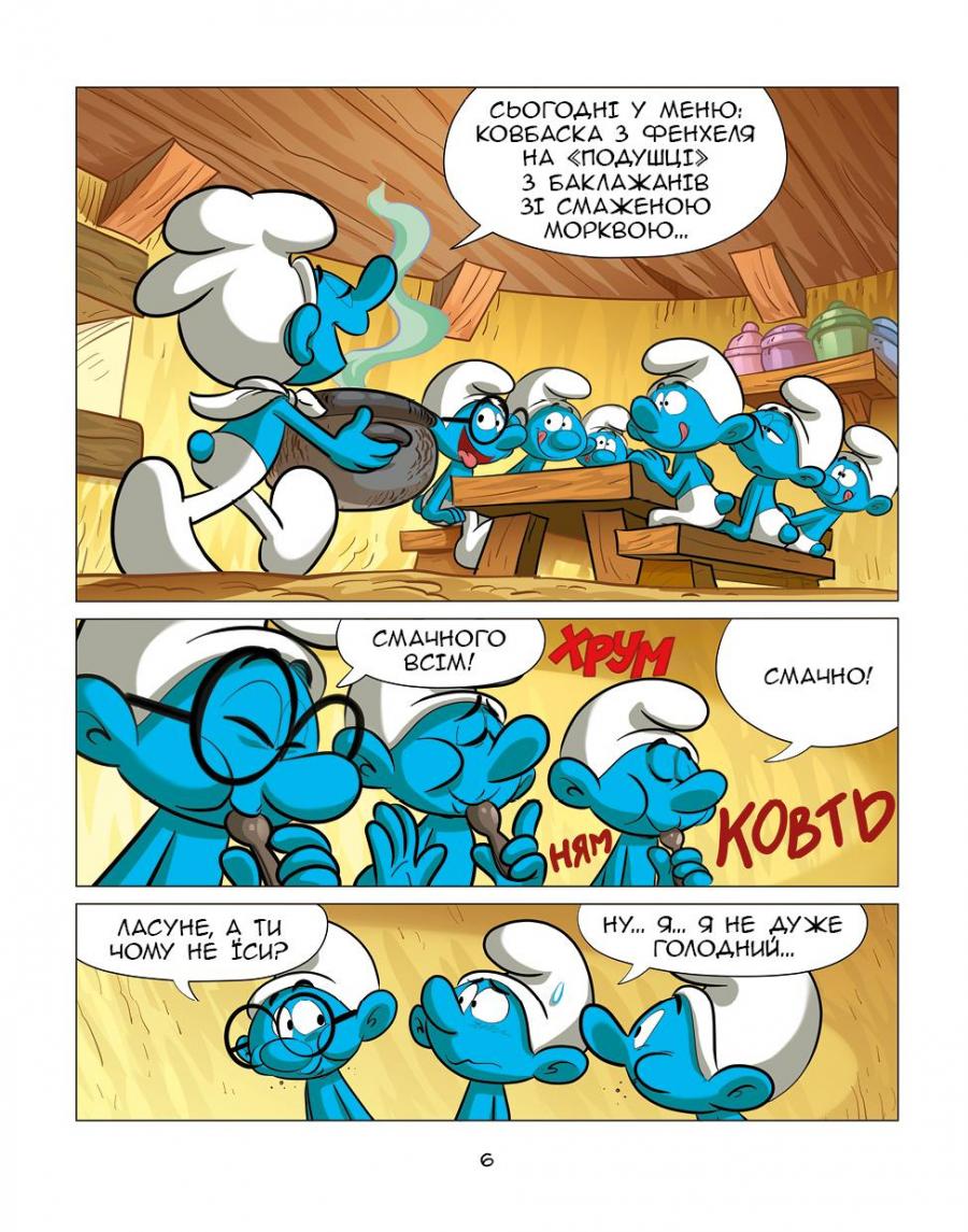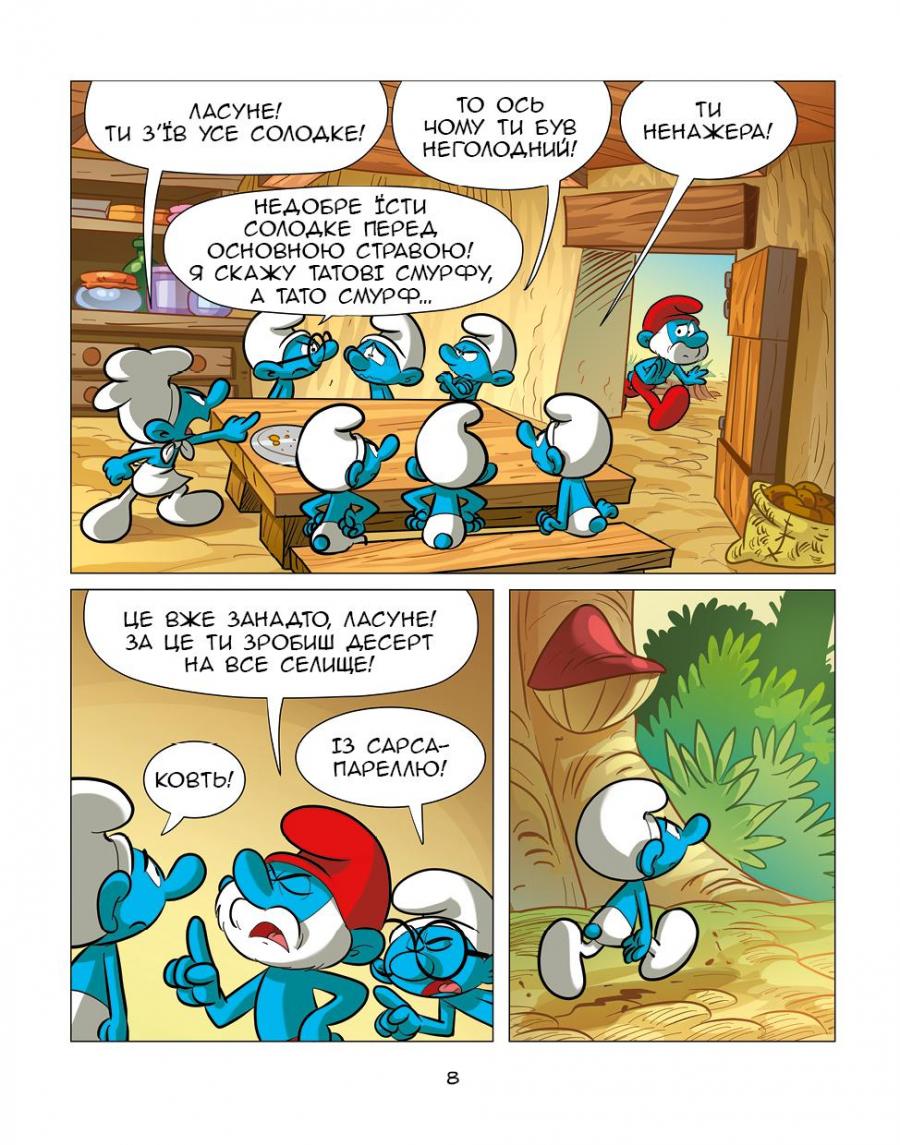Це історія смурфа Ласуна, який нехтував корисні страви, хай би як чудово їх готували. Бо найбільше йому смакували солодощі — аж настільки, що він не міг стриматись і з’їдав не лише свій десерт, аж доки його любов до смаколиків не спричинила велику небезпеку для всього селища.