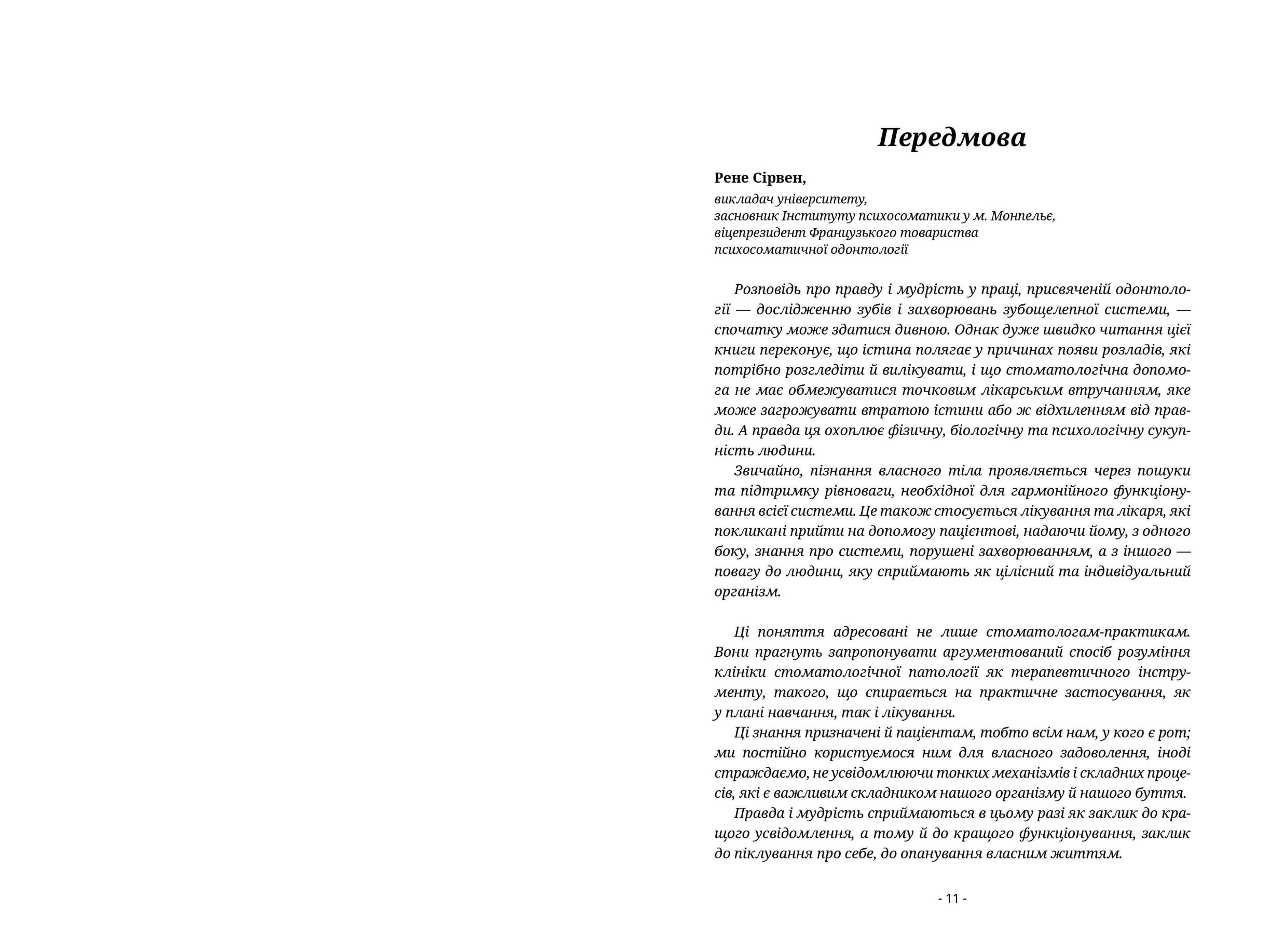 Книга з’явилася на світ українською мовою завдяки ідеї, старанням і фінансовій підтримці Ольги Косенко, лікарки-стоматолога-терапевта, лікарки-стоматолога-ортопеда, лікарки-ортодонта.