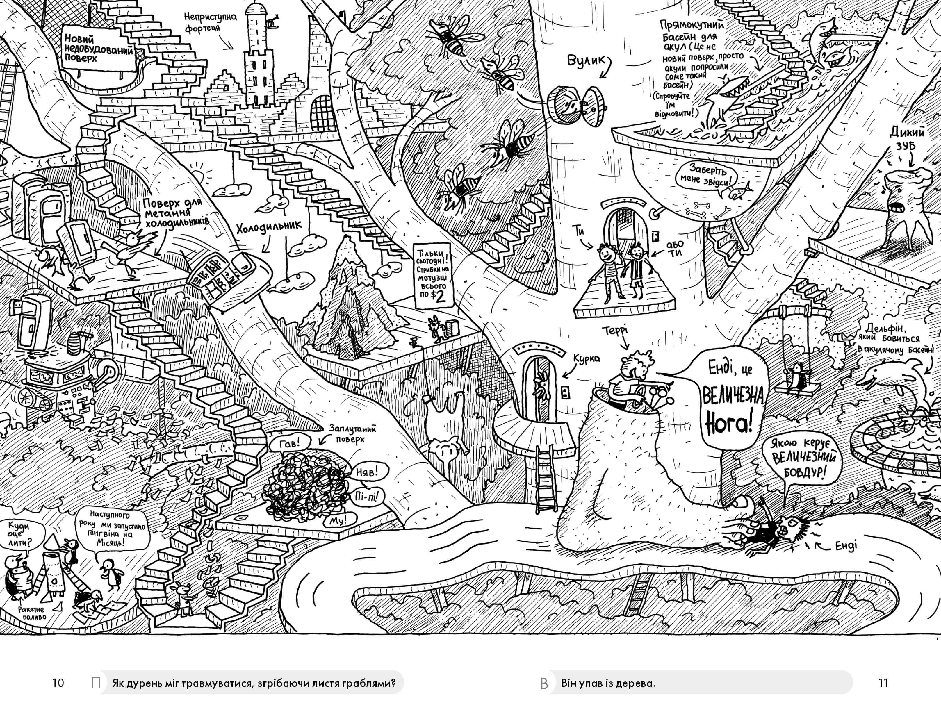 (Раніше він був 91-поверховим, але вони добудували ще тринадцять поверхів.) Тепер там є нескінченні сходи, банк відрижок, глибокодумний поверх, гора Еверест і грошоробна машина (яка робить ще й мед!). В Енді розболівся зуб, і через це він не може писати нову книжку... Але Террі знає, як цьому зарадити: треба купити «Жартописальник-2000», щоб той усе зробив за них! План надійний і продуманий — у Террі ж інших не буває! І що тут може піти не так?