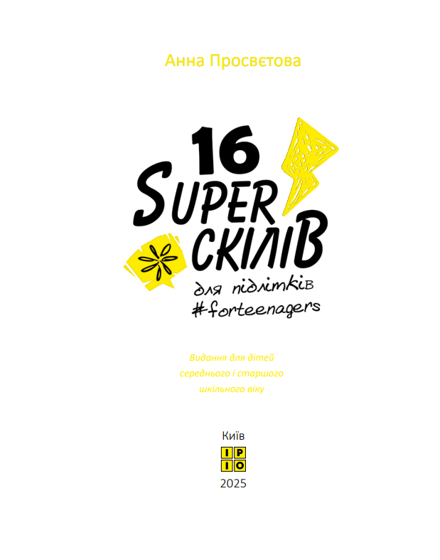 “16 суперскілів для підлітків” – це практичний посібник про навички, які насправді визначають успіх у дорослому житті. Чесно, без нотацій, без настанов. Тільки працюючі інструменти для підлітків від психологині з 10+ річним досвідом роботи.