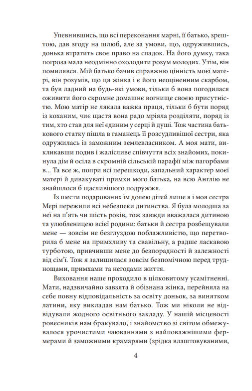 «Аґнес Ґрей» (1847) — дебютний роман письменниці, який значною мірою базується на її власному досвіді. Це історія дочки бідного священника, яка вирішує стати гувернанткою, щоб допомогти своїй родині й утвердити власну незалежність. Але ентузіазм Аґнес швидко згасає, оскільки їй доводиться мати справу з розбещеними дітьми та їхніми жорстокими, пихатими й байдужими до виховання батьками. Кожен день стає для дівчини випробуванням її внутрішньої сили та моральної стійкості. Чи зможе вона зберегти свою гідність у світі, що не визнає її як рівну?
