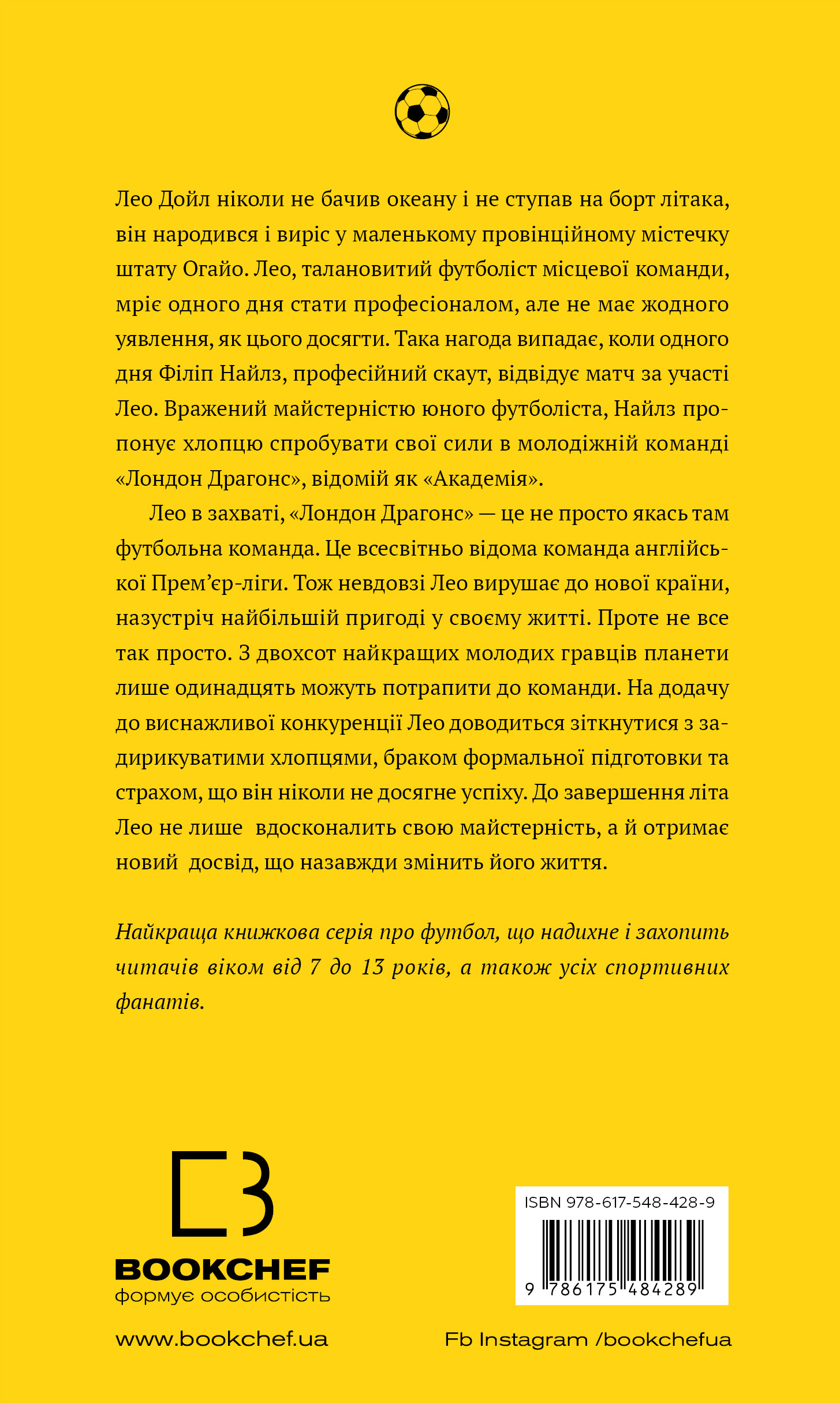 Найкраща книжкова серія про футбол, що надихне і захопить читачів віком від 7 до 13 років, а також усіх спортивних фанатів.