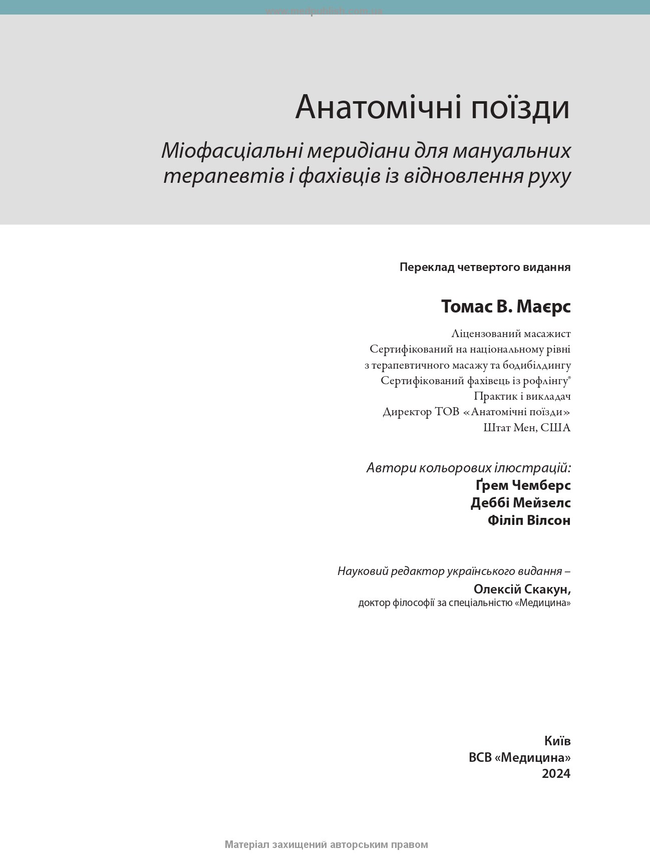 Анатомічні поїзди: міофасціальні меридіани для мануальних терапевтів і фахівців із відновлення руху: 4-е видання / Томас В. Маєрс