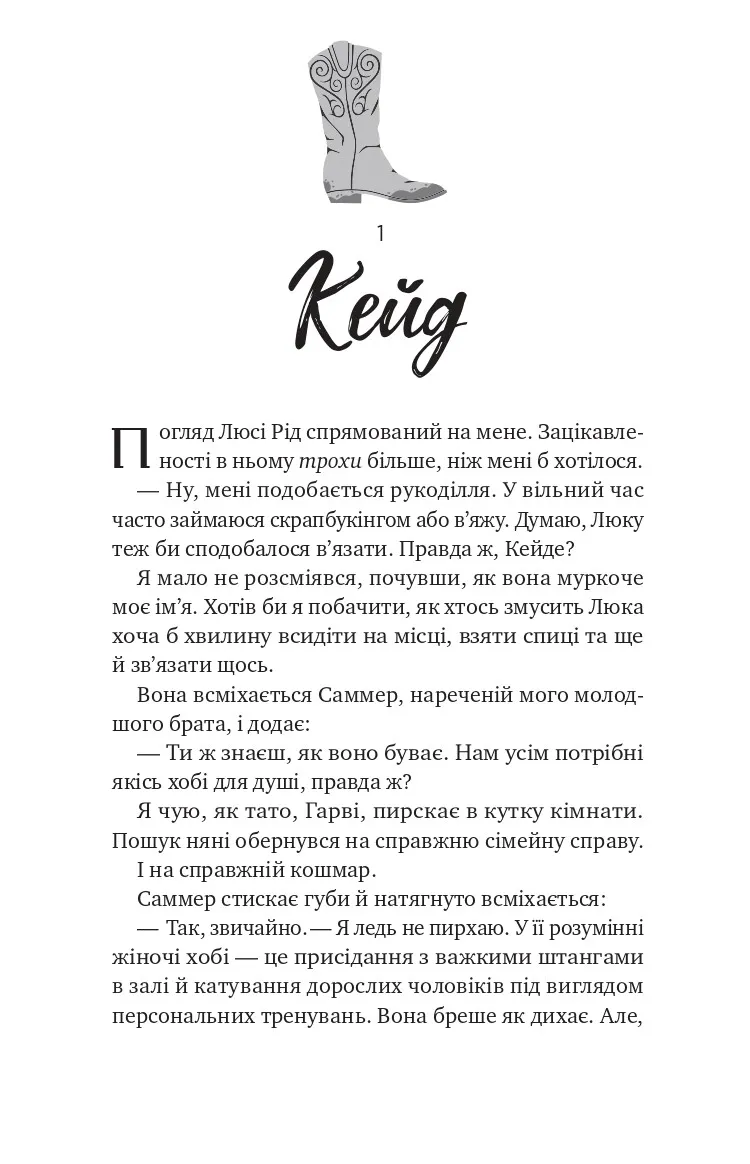 Кейд — упертий, мовчазний і збіса зранений чоловік, який поклявся більше не дозволяти ні коханню, ні болю керувати його життям. У його світі є місце лише для ранчо, сім’ї та маленького сина, за якого він відповідальний. Решта — зайве.