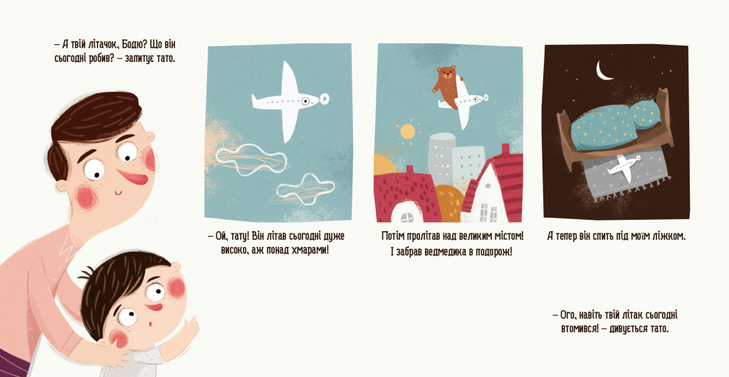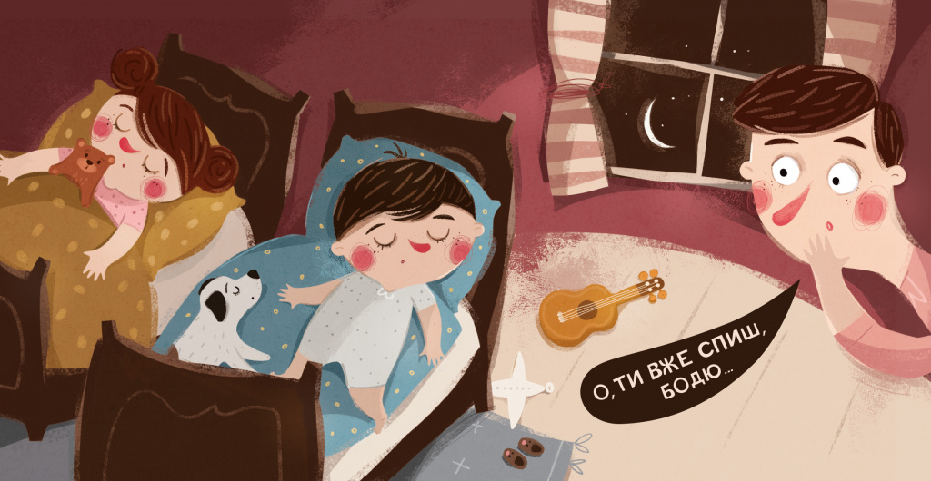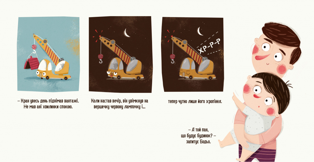 Бодьо хоче бавитися, але настає вечір i всi готуються до сну. Мися вже спить, тому треба поводитися тихо, щоб не розбудити її. А що роблять iншi? Кран увесь день пiднімав вантажі й тепер солодко хропе. Дерево та автівка, яка стоїть на паркінгу, теж вiдпочивають. Тітка, яка святкувала свій день народження, усміхається ввi снi. Ятка з морозивом зачинена, а лiтачок Бодя спокiйно лежить пiд лiжком. Ти теж вимикай світло й засинай: завтра на тебе чекає безліч нових пригод!