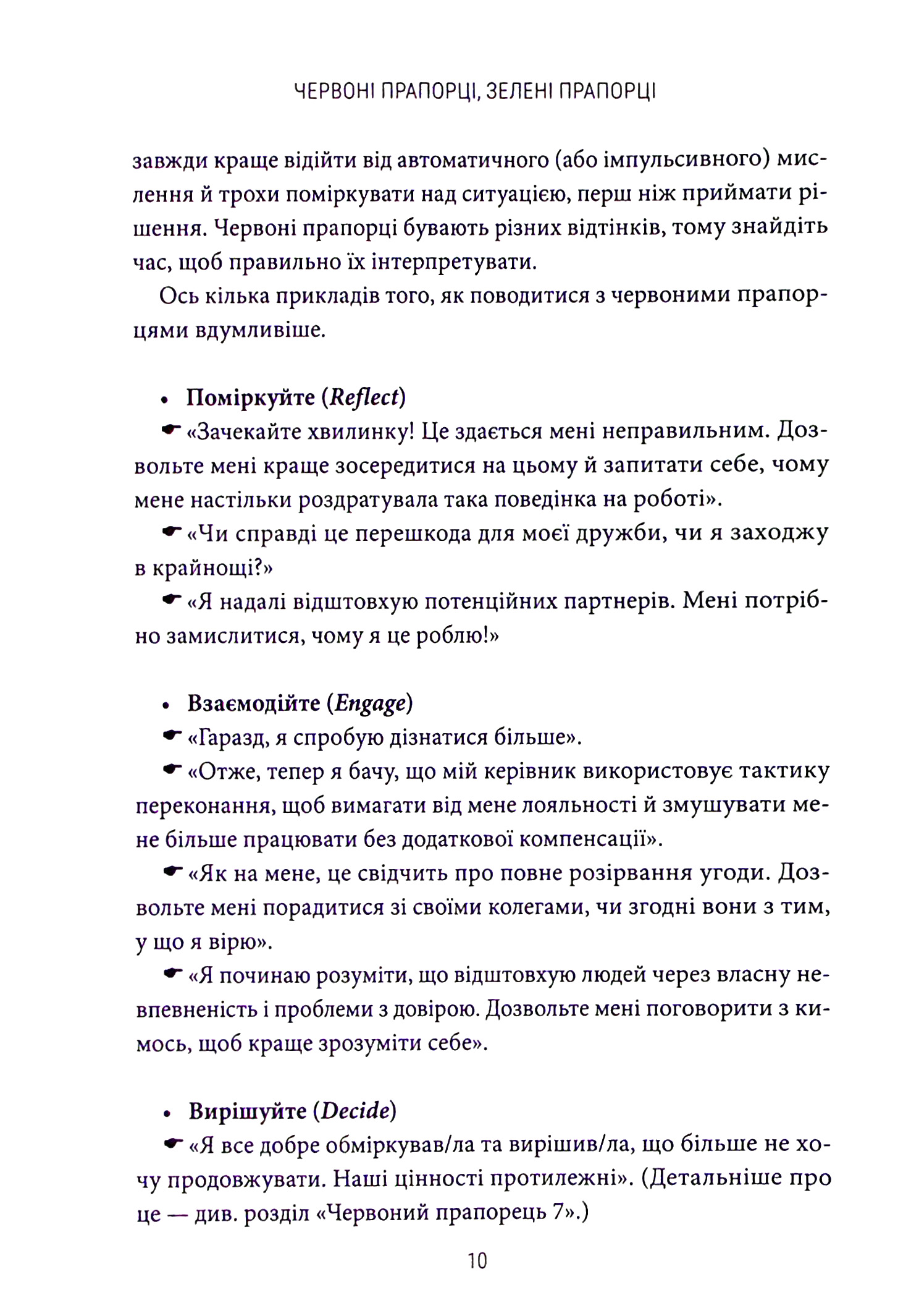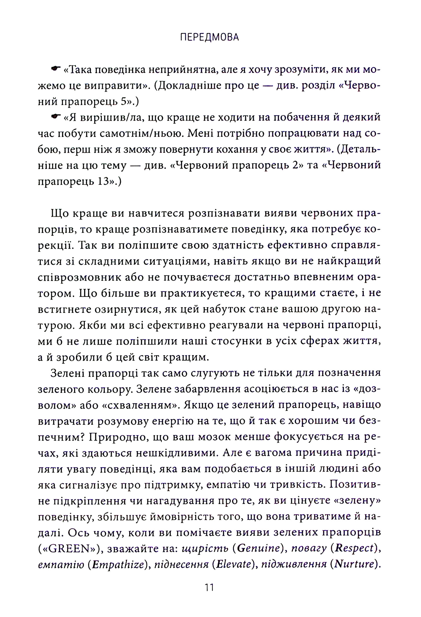 У цій книжці ви знайдете наукові дані, конкретні життєві випадки, особисті історії, психологічні інструменти, які допоможуть зрозуміти, як поводитися у різних ситуаціях і які з них є зеленими, а які - червоними прапорцями.