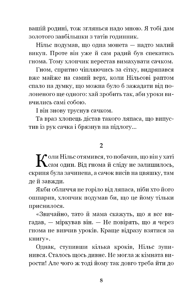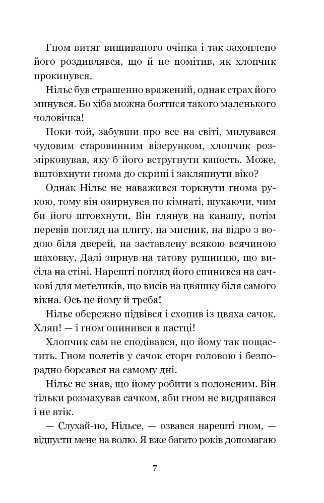 Про пригоди Нільса, невгамовного бешкетника, що кривдив пташок і тварин, розповідає книга відомої шведської письменниці Сельми Лаґерлеф. За свою неслухняність доскочив хлопець лиха — перетворився на карлика. На щастя, пожаліли його гуси, що верталися з вирію, взяли з собою. З ними він подорожує по всій Швеції і, навчений бідою, силкується зробити якомога більше добра і людям, і звірам.