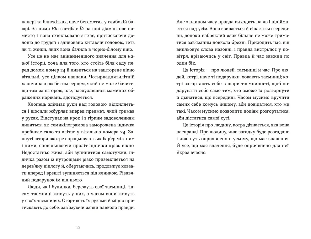 Ця книжка — про взаємини між людьми, про цінність найближчих, про переосмислення часу і його незворотності. Зрештою, ми самі обираємо, хто і що є для нас найважливішим.