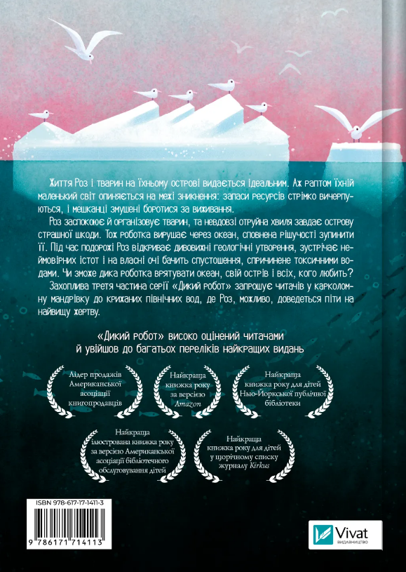 Захоплива третя частина серії «Дикий робот» запрошує читачів у карколомну мандрівку до крижаних північних вод, де Роз, можливо, доведеться піти на найвищу жертву.