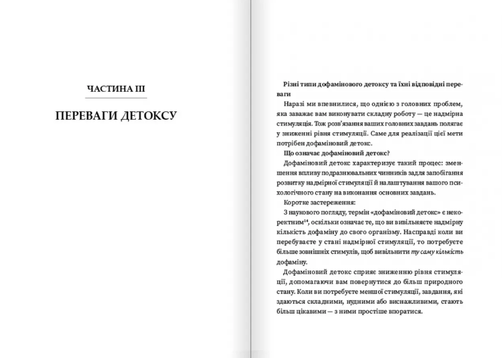 Автор пропонує дієву стратегію боротьби з надмірною стимуляцією та допомагає знайти баланс між продуктивністю і внутрішнім спокоєм.