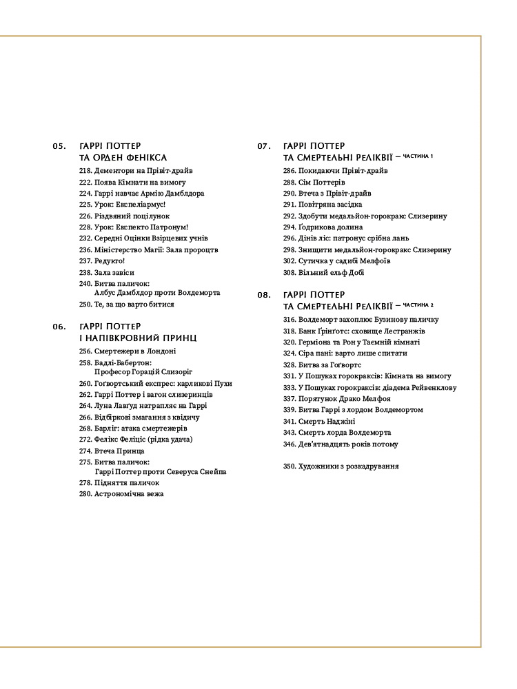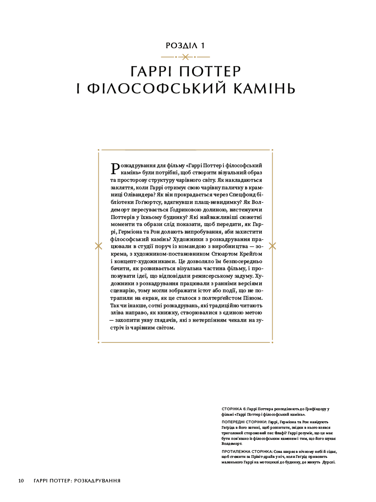 Як створювались легендарні фільми про Гаррі Поттера? Це видання - можливість зазирнути за куліси видатної історії, адже тут зібрані розкадрування до всіх 8 фільмів. Ви вперше побачите, як художники закладали візуальний фундамент магічного світу: від Гоґвортсу й Барлогу до Алеї Діаґон. Саме ці ескізи стали основою візуалізації улюблених локацій, персонажів і незабутніх сцен, які зробили серію культовою.Книга «Гаррі Поттер: розкадрування» Джоді Ревенсон містить понад 350 сторінок деталізованих розкадрувань і коментарів від учасників творчого процесу, і навіть деякі розкадрування, які не увійшли до фільмів. Це видання — чудовий подарунок не лише для фанатів Гаррі Поттера, а ще й для художників-розкадрувальників та кінематографістів. Це змога побачити процес створення культової серії від найперших ескізів до фінальних рішень.