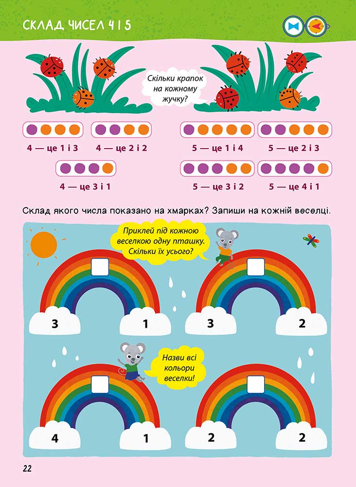 Завдяки цьому яскравому виданню дитина здобуде свої перші знання з математики, що стануть у пригоді вже незабаром — під час занять у школі.