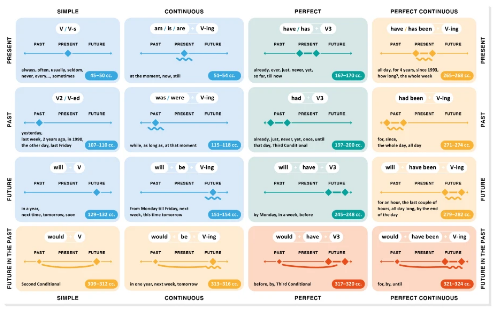 Набір містить: 168 карток із правилами та прикладами з 53 - х граматичних тем, перегородки для організації навчання, трекер вивчених тем, таблицю часів та Qr-код із робочим зошитом для виконання вправ за темами.