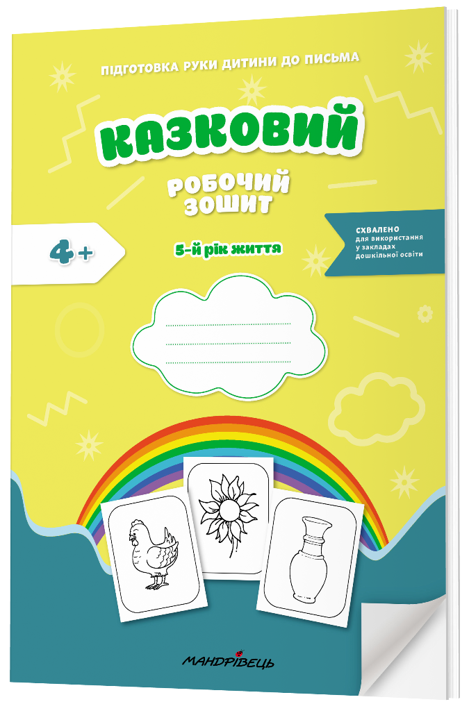 Посібник “Казковий зошит” спрямований на підготовку руки дитини до письма, а саме: розвиток дрібної моторики рук, окоміру, уваги, навчання малюванню крапок, прямих, горизонтальних, вертикальних, замкнених ліній тощо.
