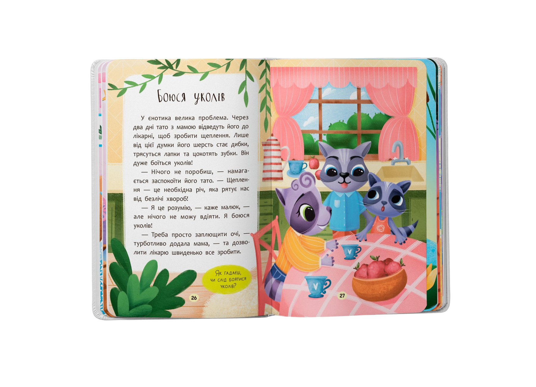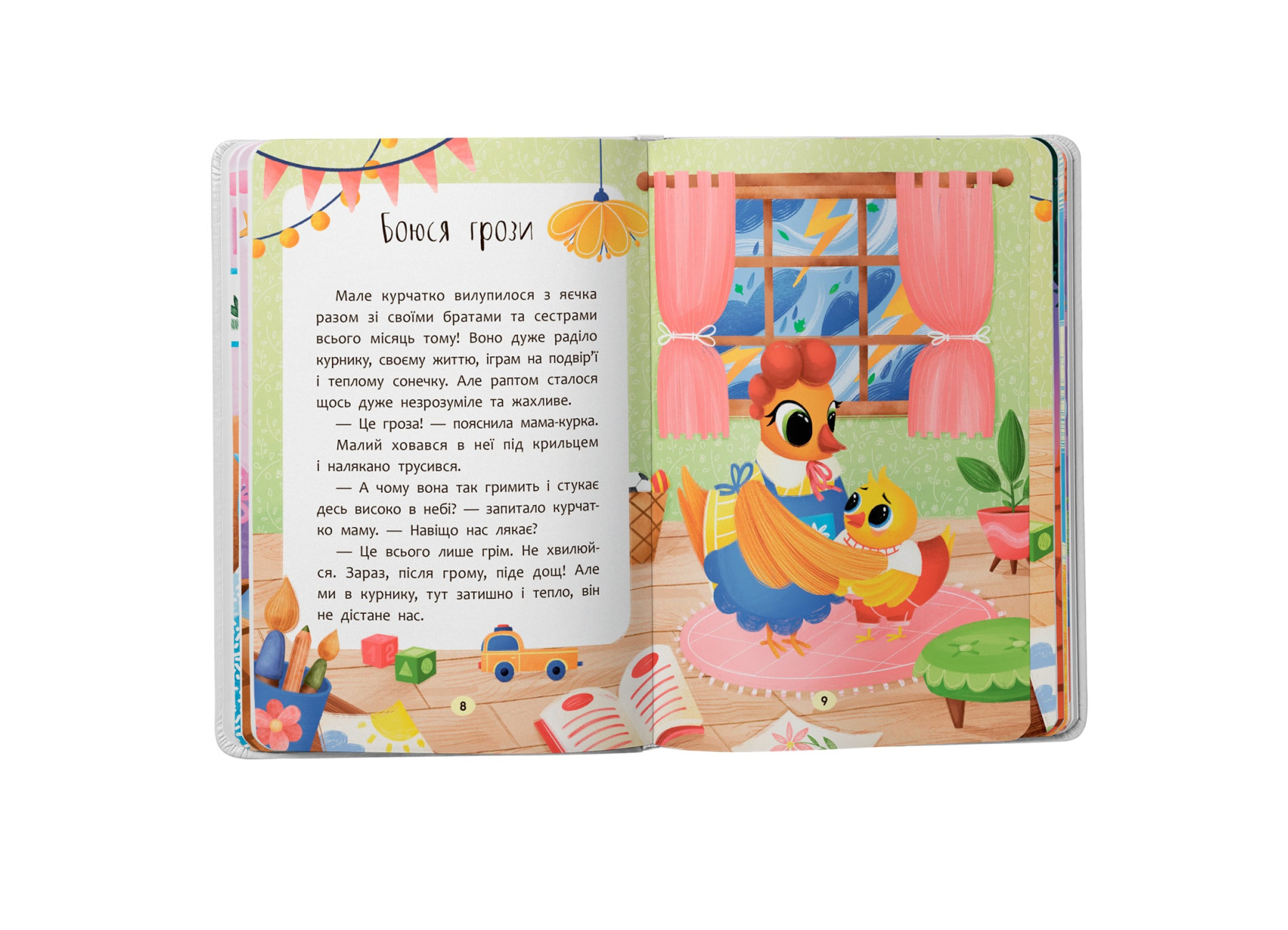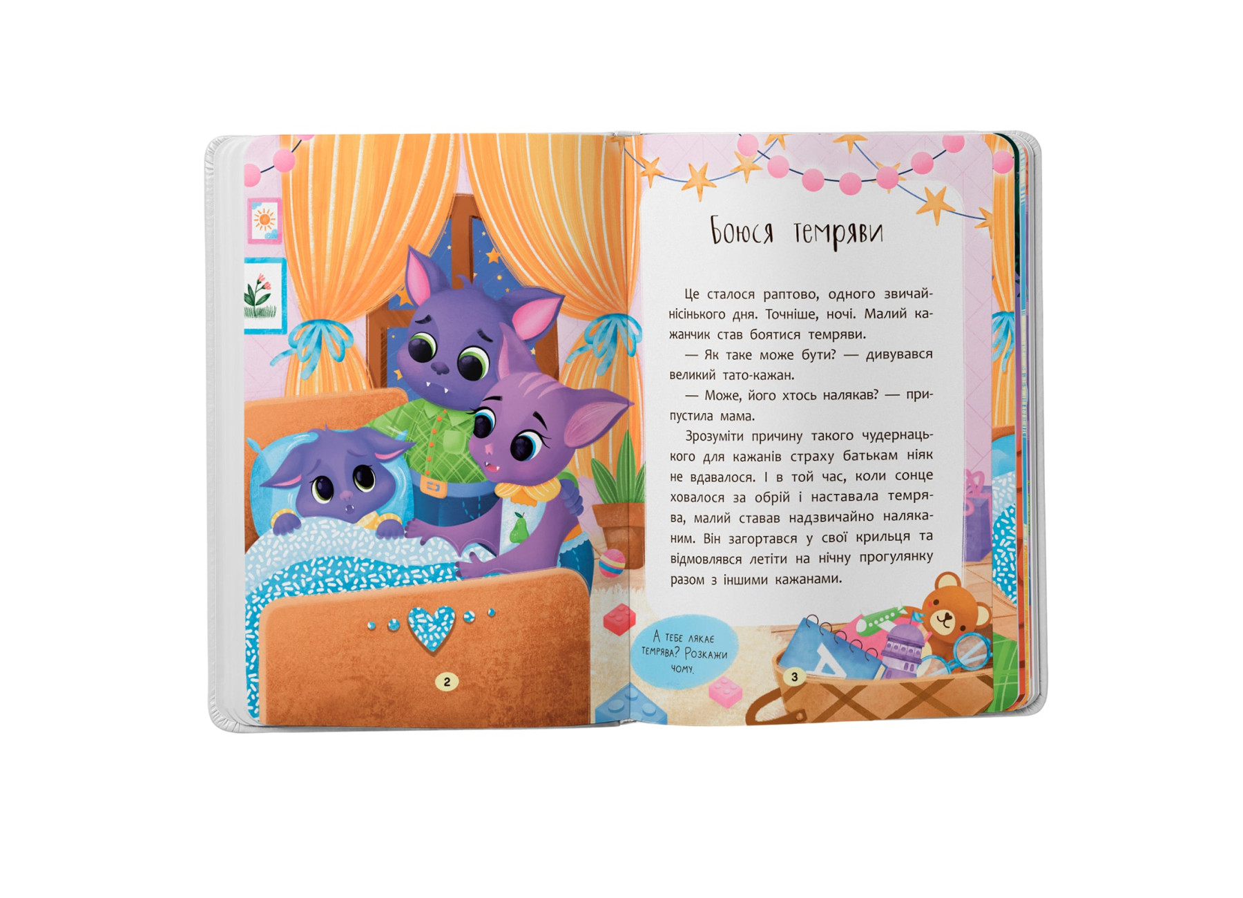 Ваша дитина відчуває різні емоції, і у неї, як і у всіх, є свої страхи: темряви, грози, води, собак, відвідування лікаря тощо. Тож завдання дорослих — допомогти малюкові подолати його страхи та тривоги, пояснити, як поводитися за тих чи інших обставин, аби опанувати свій страх. Це видання стане незамінним помічником вашого малюка в подоланні страхів, а милі герої на своєму прикладі покажуть, як легко та швидко зрозуміти, що саме лякає і як із цим упоратися. Книга допоможе дитині навчитися опановувати власні емоції, стати впевненішою у собі, розвинути довіру до світу та почуття безпеки.