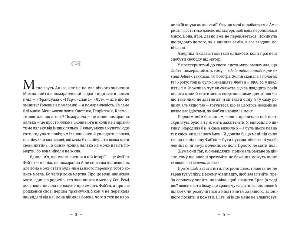 Історія-спогад від післявоєнних сільських провінцій до Парижа, від англійської школи-інтернату до тихого будинку в Пенсільванії, в якому Аньєс нарешті може жити без свого минулого.