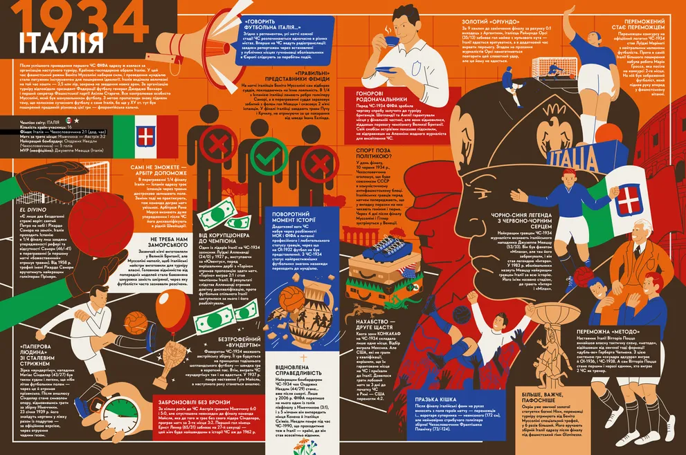 Понад 420 найцікавіших історій з 22-х мундіалів у яскравих ілюстраціях. Найважливіше з того, що відбувалось на футбольному полі і поза ним, — події, новини, чутки, легенди і міфи мундіалів. Команда фахівців зібрала «вершки» фактів. Тож розгортайте, читайте і смакуйте. Чемпіонати світу того варті.