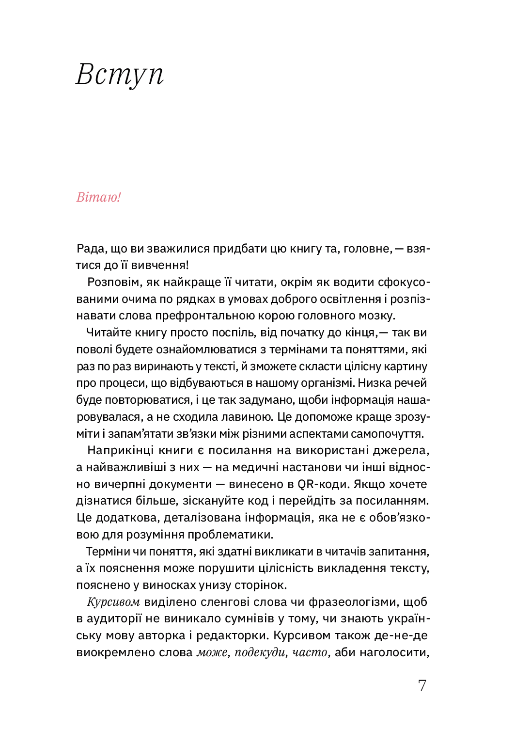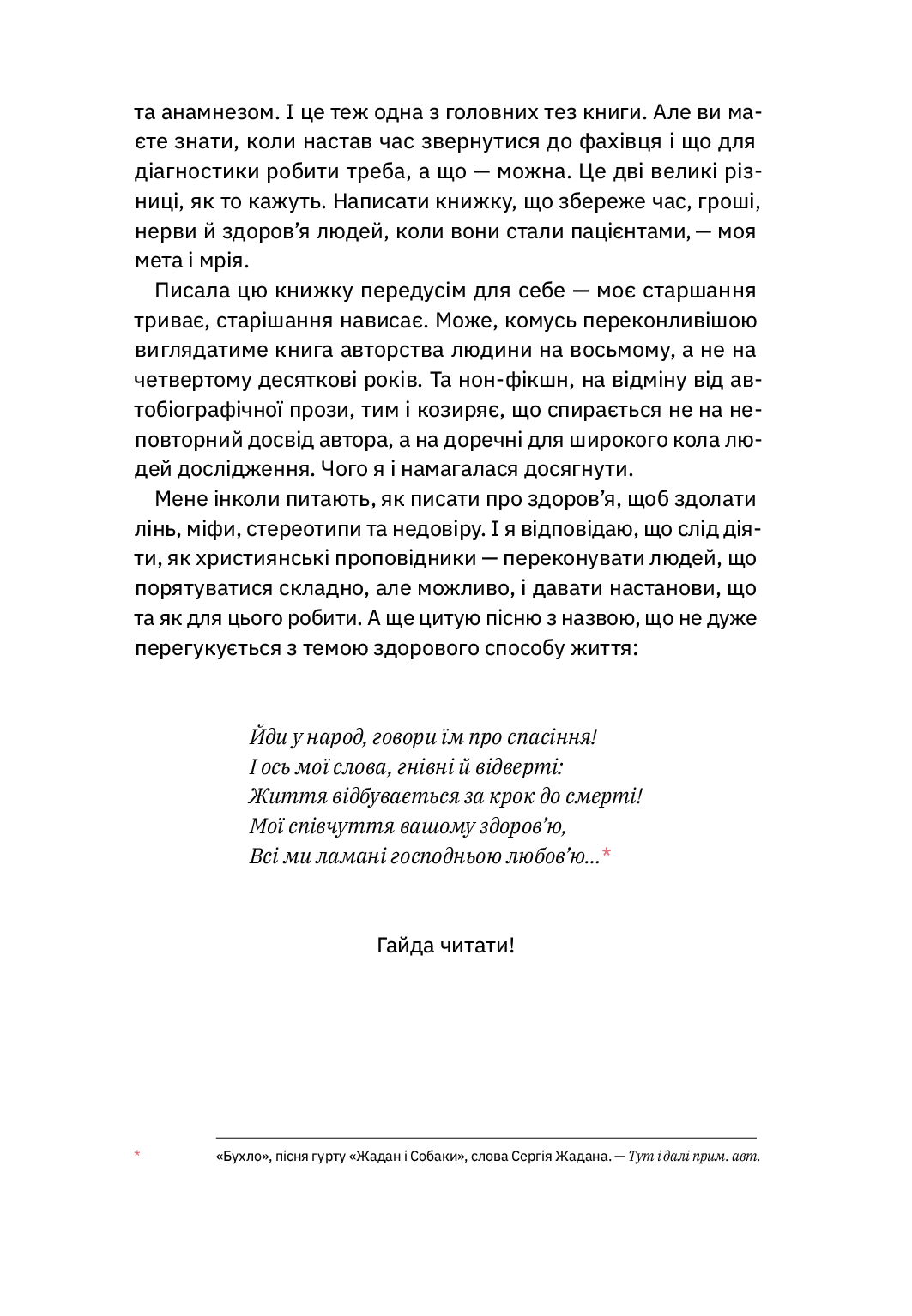 "Книжка для дорослих. Як старшати, але не старіти" в цьому допоможе. В ній йде мова про чинники, що сповільнюють чи прискорюють старіння, про запобігання серцево-судинним хворобам та раку, життя з діабетом та хворобами легень й кишківника, піклування про тіло від очей до кісток, психічний добробут, загальні та специфічні поради з харчування, про менопаузу, ерекцію, секс, й те, як жити довго і щасливо. Тільки без магії й чарівних пігулок.