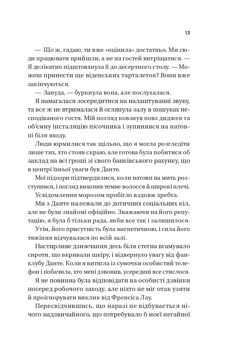 Данте Руссо любить контролювати все в особистому й професійному житті. Один із найбагатших чоловіків Нью-Йорка, зарозумілий генеральний директор великої корпорації, він ніколи не планував одружуватися. Але шантаж змусив його погодитися на заручини з ледь знайомою Вів’єн Лау — ідеальною в усіх сенсах спадкоємицею ювелірного бізнесу, дочкою його нового ворога. Байдуже, яка вона елегантна, амбітна й вишукана. Данте Руссо зробить усе, щоб знищити компрометувальні фотографії і розірвати заручини. Якщо не закохається…