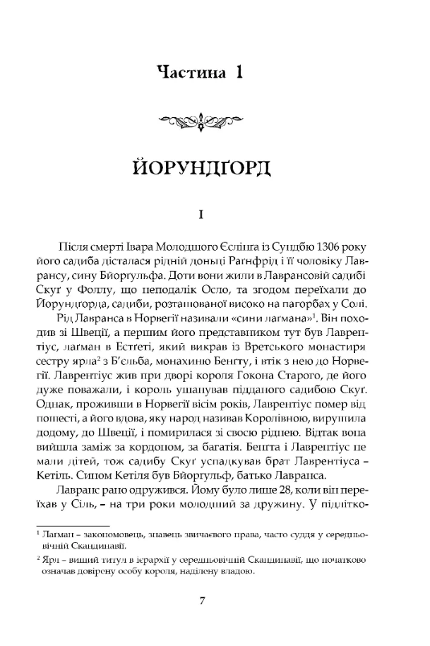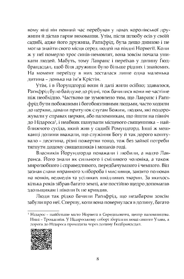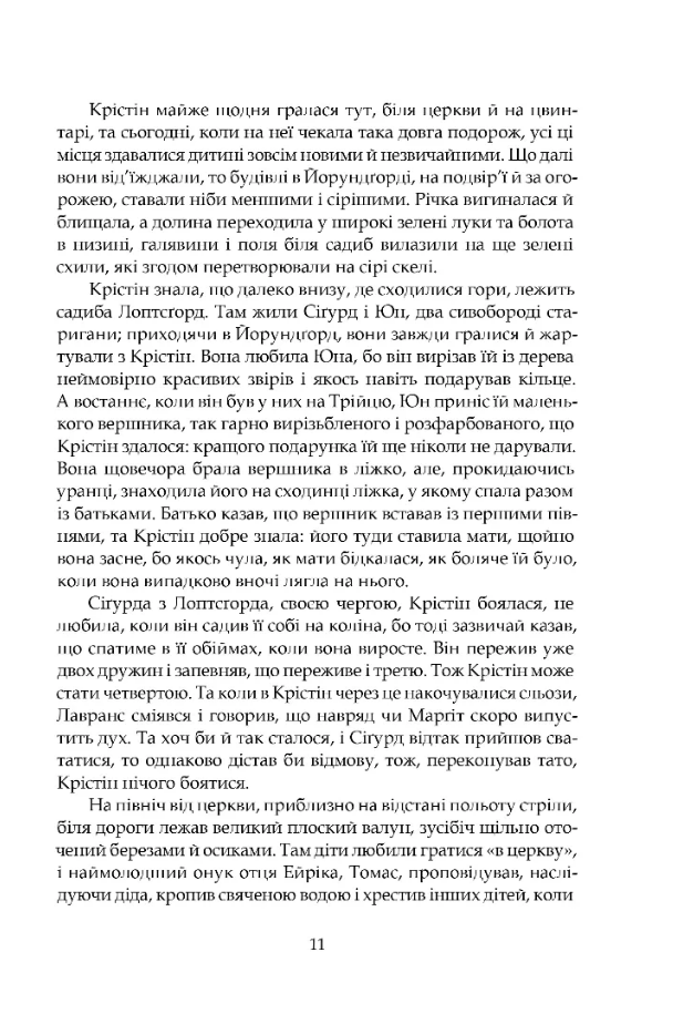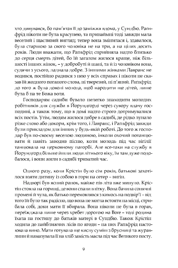 «Вінець» – перша частина славетної трилогії «Крістін, донька Лавранса» відомої норвезької письменниці, лавреатки Нобелівської премії 1928 року, Сіґрід Унсет. Три частини роману – три основні періоди в житті головної героїні Крістін, перша з яких розповідає про розвиток і становлення батькової улюблениці від дитячих літ, забав на подвір’ї, пізнання таємниць лісу, знайомства з монахом Едвіном, який, врешті, стане її неформальним духовним наставником, аж до заручин і виборювання права на заміжжя за покликом серця. Крістін, попри традиційне виховання і навчання, попри втрати, помилки і страхи, мужньо бореться за щастя бути поруч з коханою людиною.