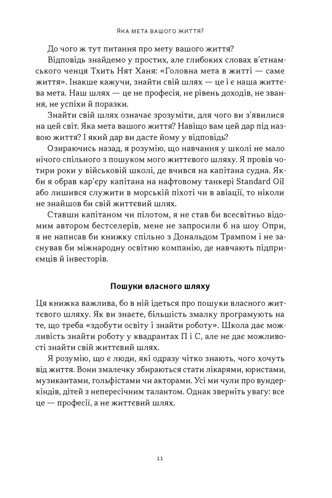 Різниця між цими порадами — не у словах, а в тому, як ви заробляєте гроші. Можна носити воду відрами або ж побудувати власний водопровід. У цій книжці Роберт Кійосакі пропонує просту й водночас революційну модель — квадрант грошового потоку E-S-B-I. Найманий працівник, самозайнятий, власник бізнесу та інвестор — чотири способи отримувати дохід і чотири різні типи мислення. Автор допомагає визначити, у якому секторі перебуваєте зараз ви, та показує шлях переходу до тих квадрантів, де ви знайдете суттєві податкові переваги й де народжується фінансова свобода.