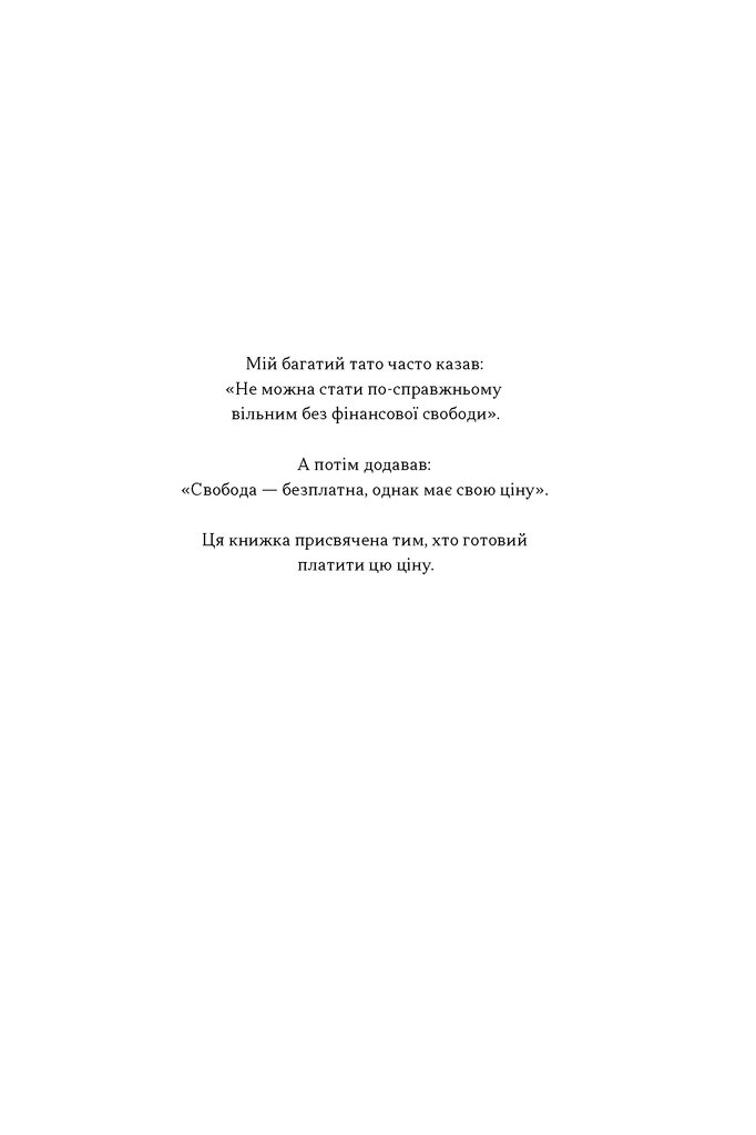 Це книжка для тих, хто втомився від «щурячих перегонів», не хоче покладатися лише на зарплатню і готовий змінити фінансовий сценарій свого життя. Оберіть свободу замість ілюзії стабільності — і навчіться грати за правилами великих грошей.