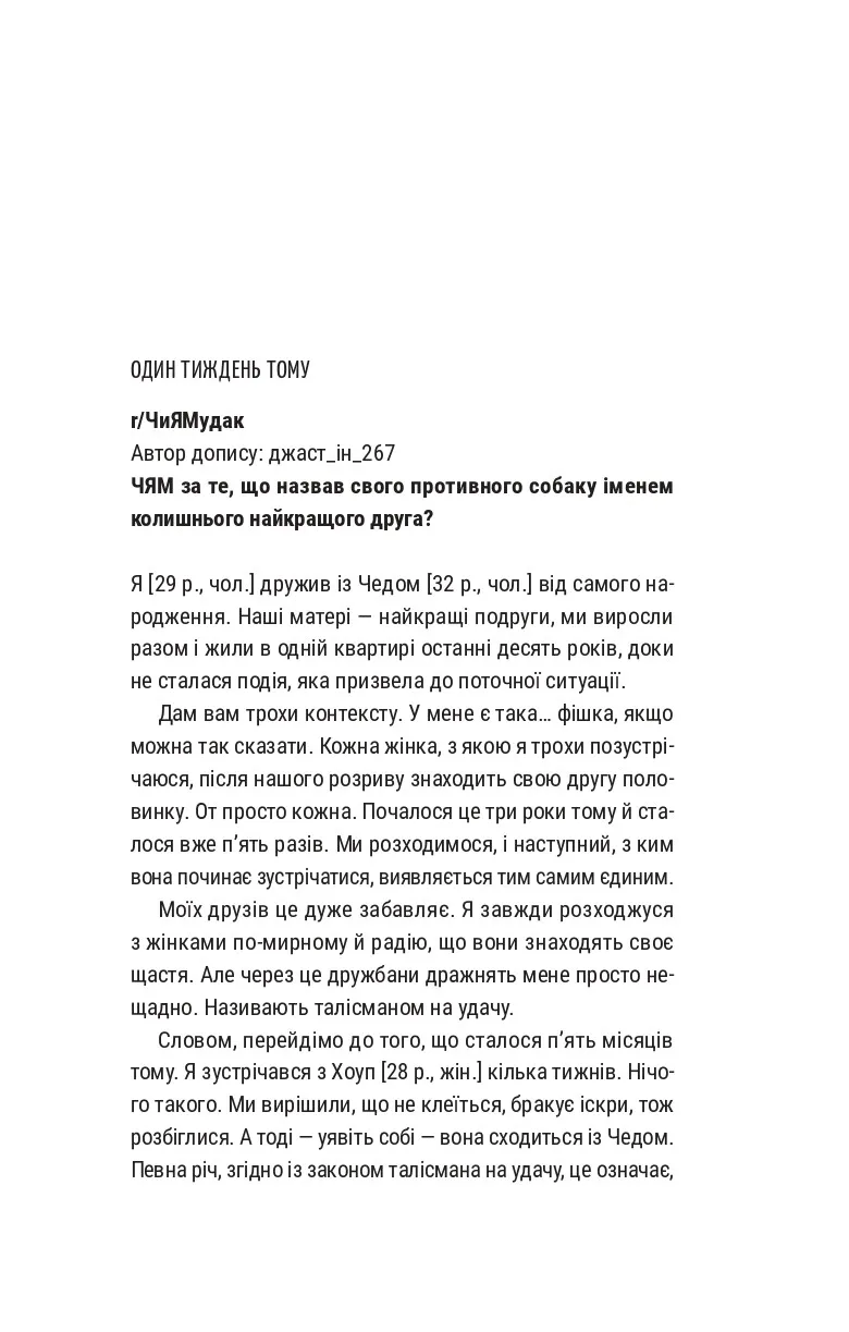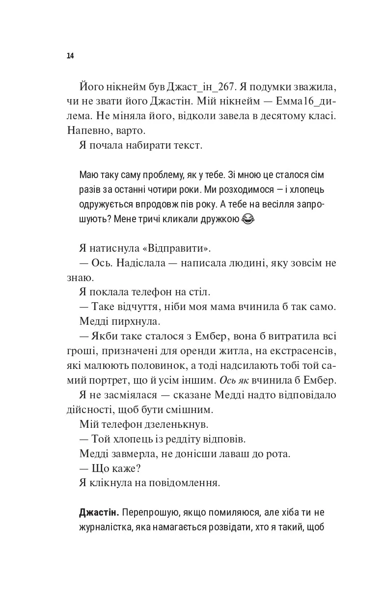 На реддіті знають: Джастін проклятий. Кожна жінка зустрічала кохання всього свого життя… після цього хлопця-талісмана. Емма не планувала відрядження в Міннесоту, але чом би не орендувати історичний котедж на острові посеред озера Міннетонка, щоб звільнитися від власного прокляття «колишньої перед тією самою» у приємній компанії товариша в нещасті й найкращої подруги? Це мав би бути роман лише на літо — взаємознищення двох проклять. Невже поява на сцені токсичної Емминої матері і невлаштованих Джастінових молодших брата й сестер розладнає «не закоханим» плани урвати чотири побачення й один поцілунок і припинити стосунки, щоб знайти споріднену душу?