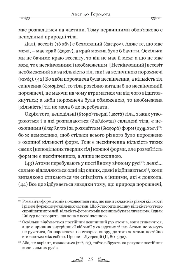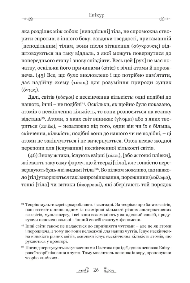 «Не вдавай, що вивчаєш філософію, а справді вивчай її: адже нам треба не вдавати, що ми здорові, а справді бути здоровими», – заохочує нас загадковий грецький філософ Епікур. Український читач уперше отримує змогу спробувати на зуб читво, яке історії вдалося врятувати і донести до наших днів. Ославлений як гедоніст, Епікур і справді найбільше дбав про те, щоб життя прожити в задоволення, ще й інших цього навчав. Однак шлях до задоволення, в його розумінні, пролягає аж ніяк не через супермаркет. Епікур виписує рецепти справжнього задоволення, хоч не завжди розбірливо, як це часто буває з рецептами. Передмова і післямова перекладача мають допомогти правильно зрозуміти ці рецепти.