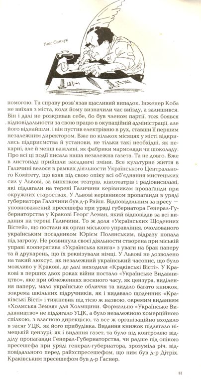 Відомий український письменник Остап Тарнавський розповідає у своїх споминах про літературне та мистецьку життя багатонаціонального Львова у роки радянської та німецької окупації. Працюючи журналістом, він мав змогу спілкуватися з У.Самчуком, І.Багряним, Т.Осьмачкою, А.Любченком; подає колоритні портрети Ю.Косача, Б.Нижанківського, В.Ткачука, Т.Мигаля та інших українських письменників і митців. Зі сторінок книги до читача прийде грізна, бурхлива, насичена неординарними подіями епоха.