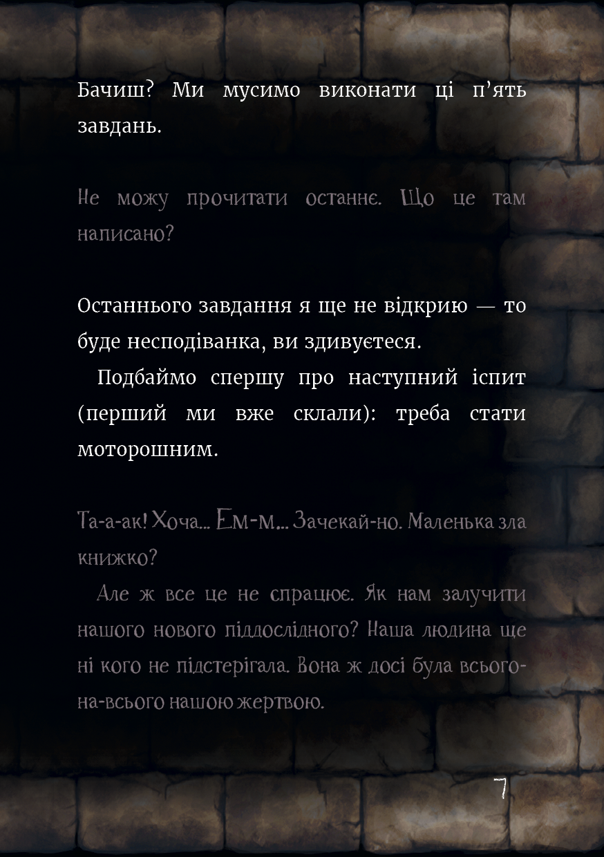 Тоді я відкрию тобі монструозно... Стоп! Ще рано про це говорити. Спочатку я маю переконатися, що ти не налякаєшся кількох чудовиськ і не втікатимеш із криками. Ти маєш бути достатньо хоробрим і розумним, щоб справлятися зі справжніми монстрами. Адже застерігаю тебе: тут буде по-справжньому монструозно! І сповнено пригод! І неймовірно захопливо!