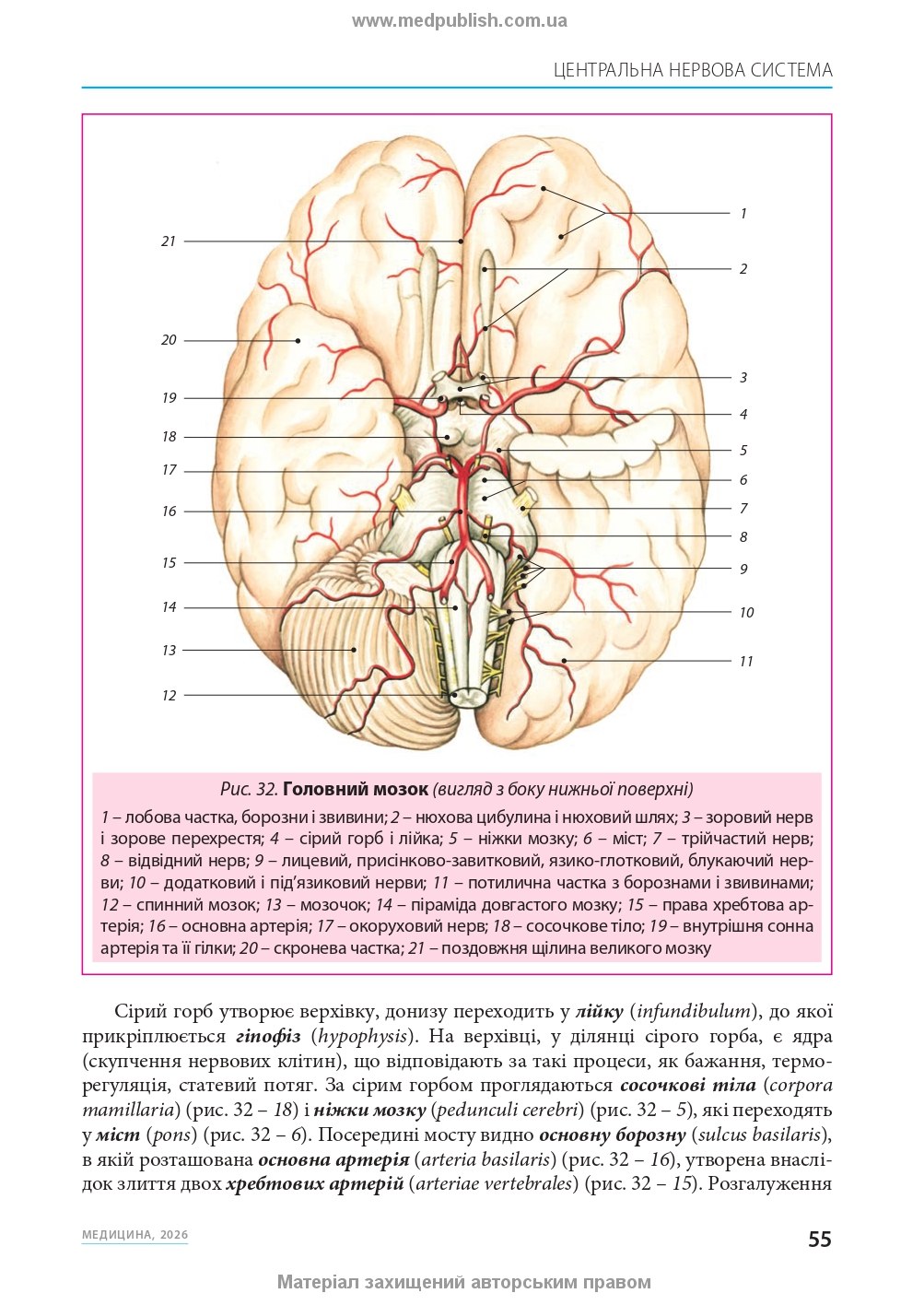 Для поглибленого вивчення у цьому виданні детальніше викладено теми «Кістки» та «Кровоносні судини» з доповненням їх зображень у різних проєкціях. Додано нові теми: «Утворення та циркуляція спинномозкової рідини», «Шлуночки головного мозку», «Провідні шляхи нервової системи».