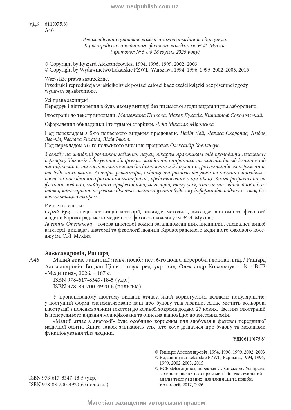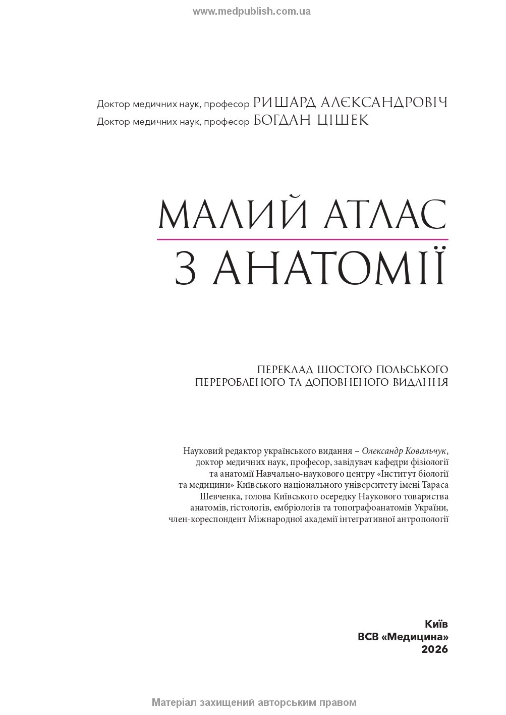 «Малий атлас з анатомії» буде особливо корисним для здобувачів фахової передвищої медичної освіти, а також зацікавить усіх, хто хоче дізнатися про будову та механізми функціонування тіла людини.