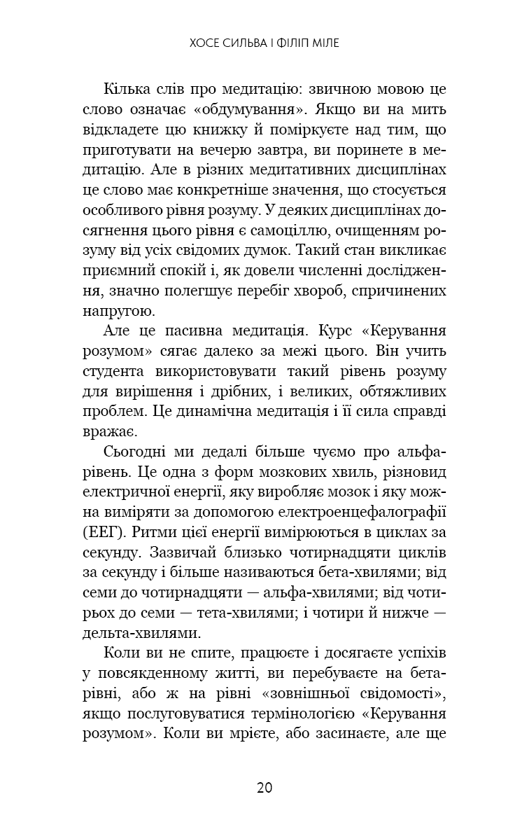 Уперше опублікована в 1978 році, ця книга допомогла мільйонам людей створити краще, щасливіше й успішніше життя. Використовуючи екстраординарний курс керування розумом, розроблений Хосе Сильвою в 1960-х роках, автори цього доступного посібника пропонують дієву програму, яка допоможе пом’якшити стрес, подолати шкідливі звички й емоційну незахищеність, підвищити креативність, розвинути концентрацію, реалізувати свої мрії й поглибити стосунки. Ця революційна книга, що містить поради щодо трансформації і захопливі тематичні дослідження, навчить вас використовувати свій розум на глибшому й ефективнішому рівні й розкрити його надзвичайну силу.