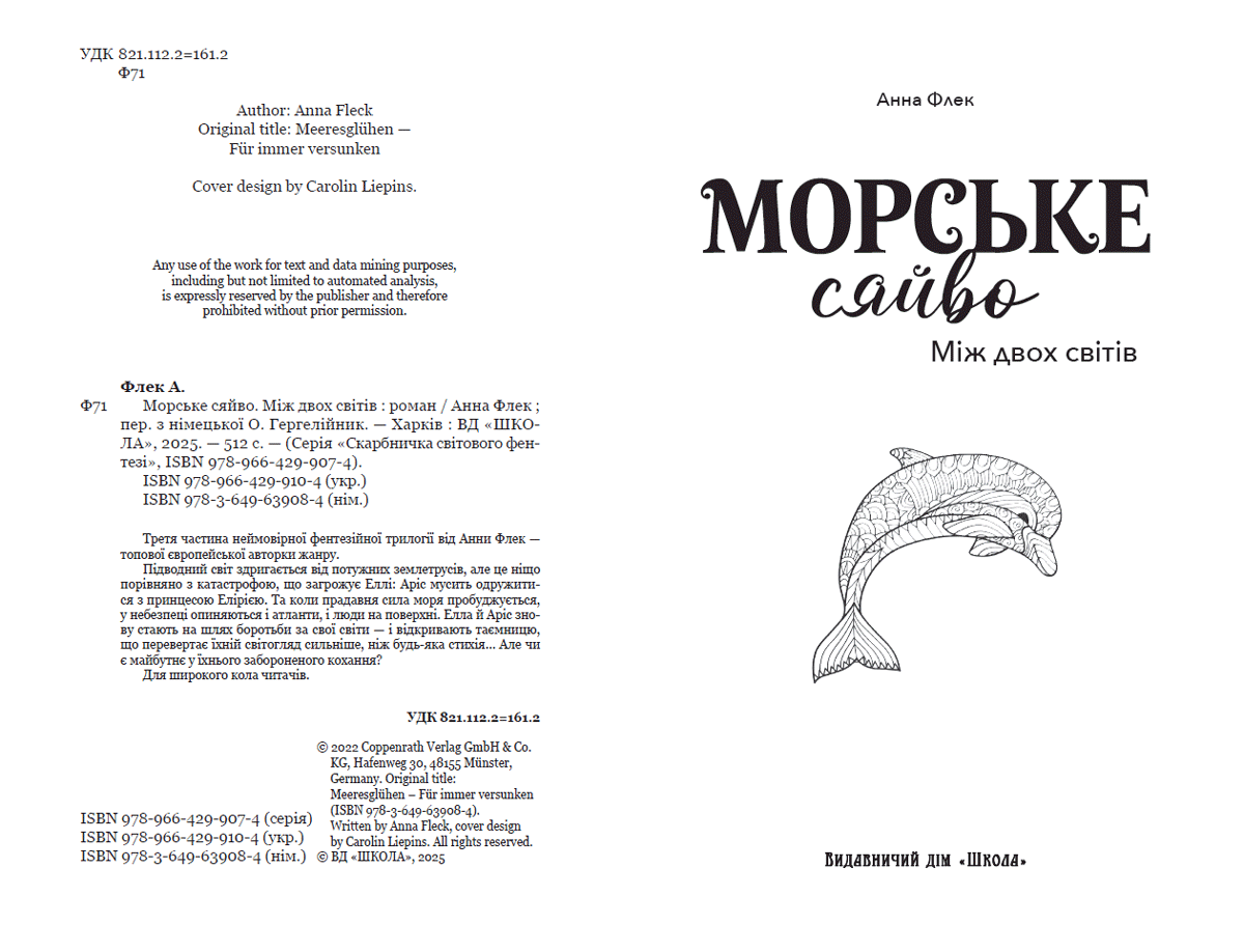 Третя частина неймовіної фентезійної трилогіі від Анни Флек - топової європейської авторки жанру. Підводний світ здригається від потужних землетрусів, але це ніщо порівняно з катастрофою, що загрожує Еллі: Аліс мусить одружитися з принцесою Елірією. Та коли продавня сила моря пробуджується, у небезпеці опиняються і атланти, і люди на поверхні. Елла й Аріс знову стають на шлях боротьби за свої світи - і відкривають таємницю, що перевертають іхній світогляд сильніше, ніж будь яка стихія... Але чи є майбутнє у їхнього забороненого кохання? Для широкого кола читачів.